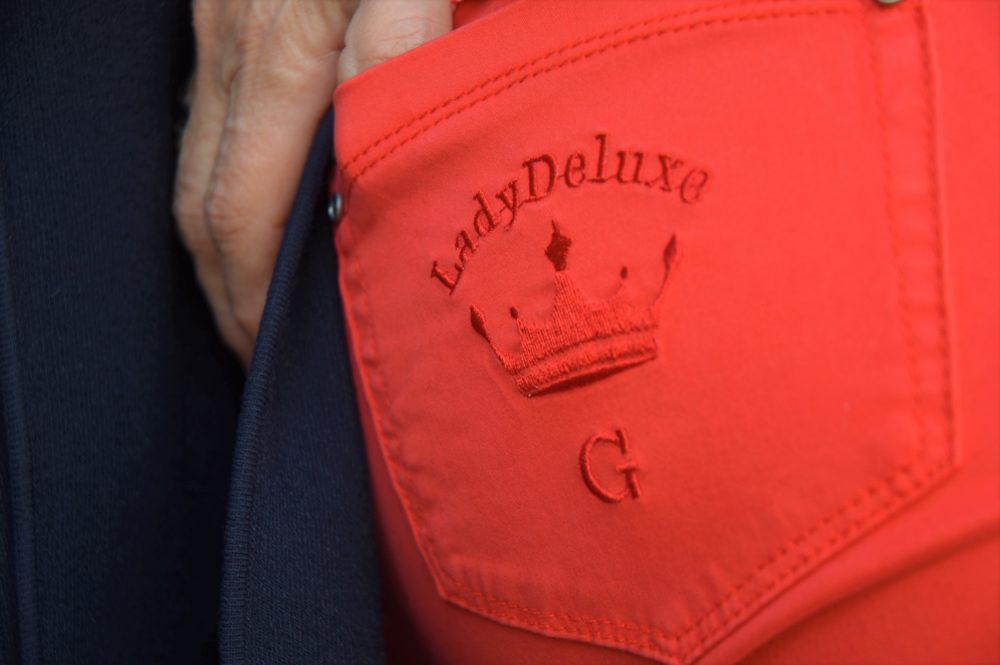Ganz eindeutig: Das neue Highlight der neuen LADY DELUXE ist die wertvolle individuelle personalisierte Monogramm Stickerei auf der Gesäßtasche. Die Krönung ist das LADY DELUXE KRÖNCHEN! Dein individuelles Monogramm ist mit einer Krone verziert. Die Buchstaben G, M und S werden exklusive in Szene gesetzt. Das gibt Deinen Look das besondere Extra!