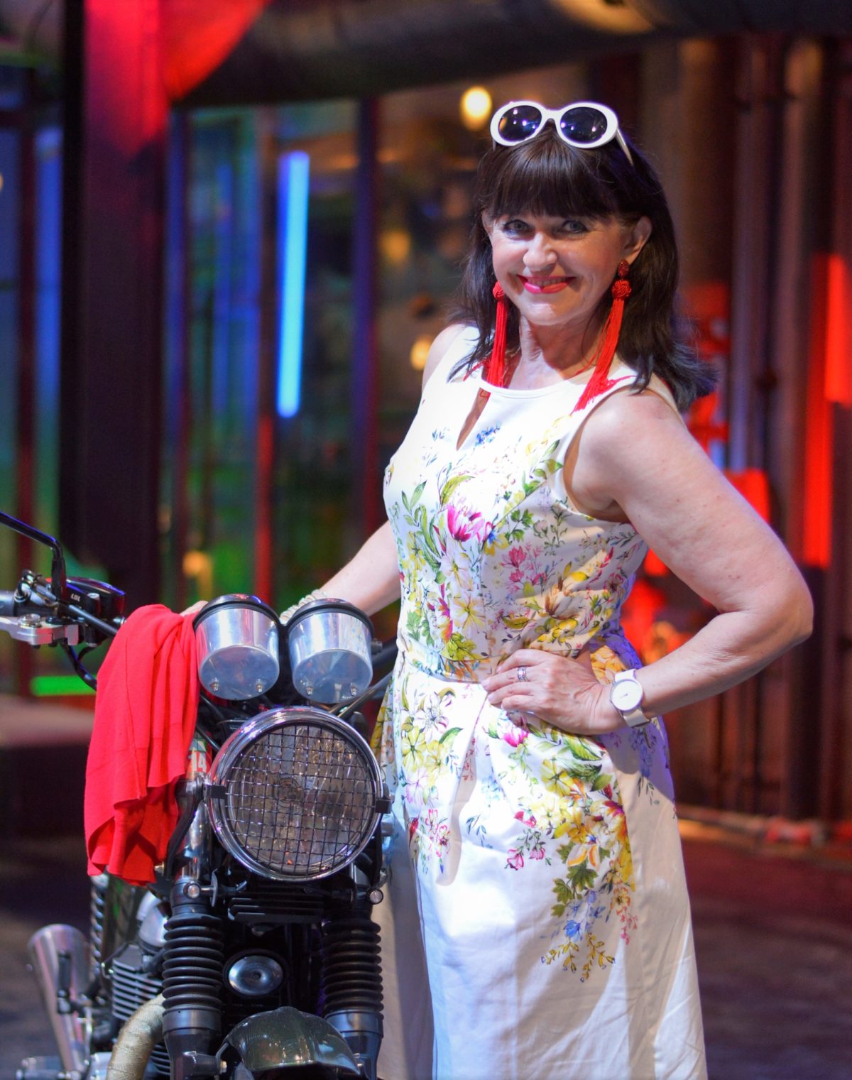 Guten Morgen Martina, das Kleid ist toll und deine Accessoires sind wieder WOW. Am besten ist natürlich das Motorrad, da könnte ich gleich losfahren. ?Blumenmuster ziehen mich dieses Jahr auch an und ich gehe jetzt mal in den Betty Barclay Shop, denn das Kleid gefällt mir sehr gut. Ich freue mich schon auf die Capes und ich denke die würden auch sehr gut passen. Viele liebe Grüße Beate