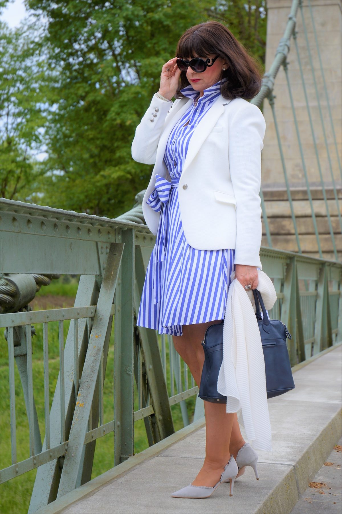 Das Blusenkleid finde ich richtig chic. Auch Deine Kombinationen gefallen mir. Am Schönsten finde ich die Kombi mit dem weißen Blazer. Das sieht so herrlich frisch und sommerlich aus.