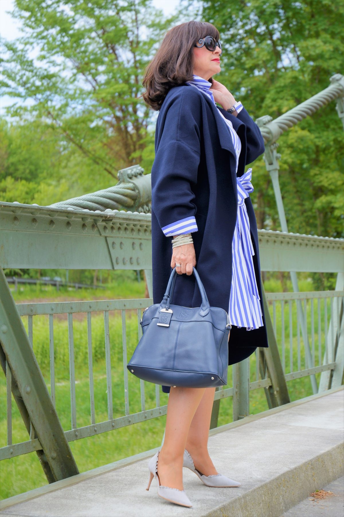 ich finde die Kombi blau-weiß sehr schick. Das gestreifte Kleid steht dir ausgesprochen gut, auch mir gefällt es am besten mit dem Strickmantel.