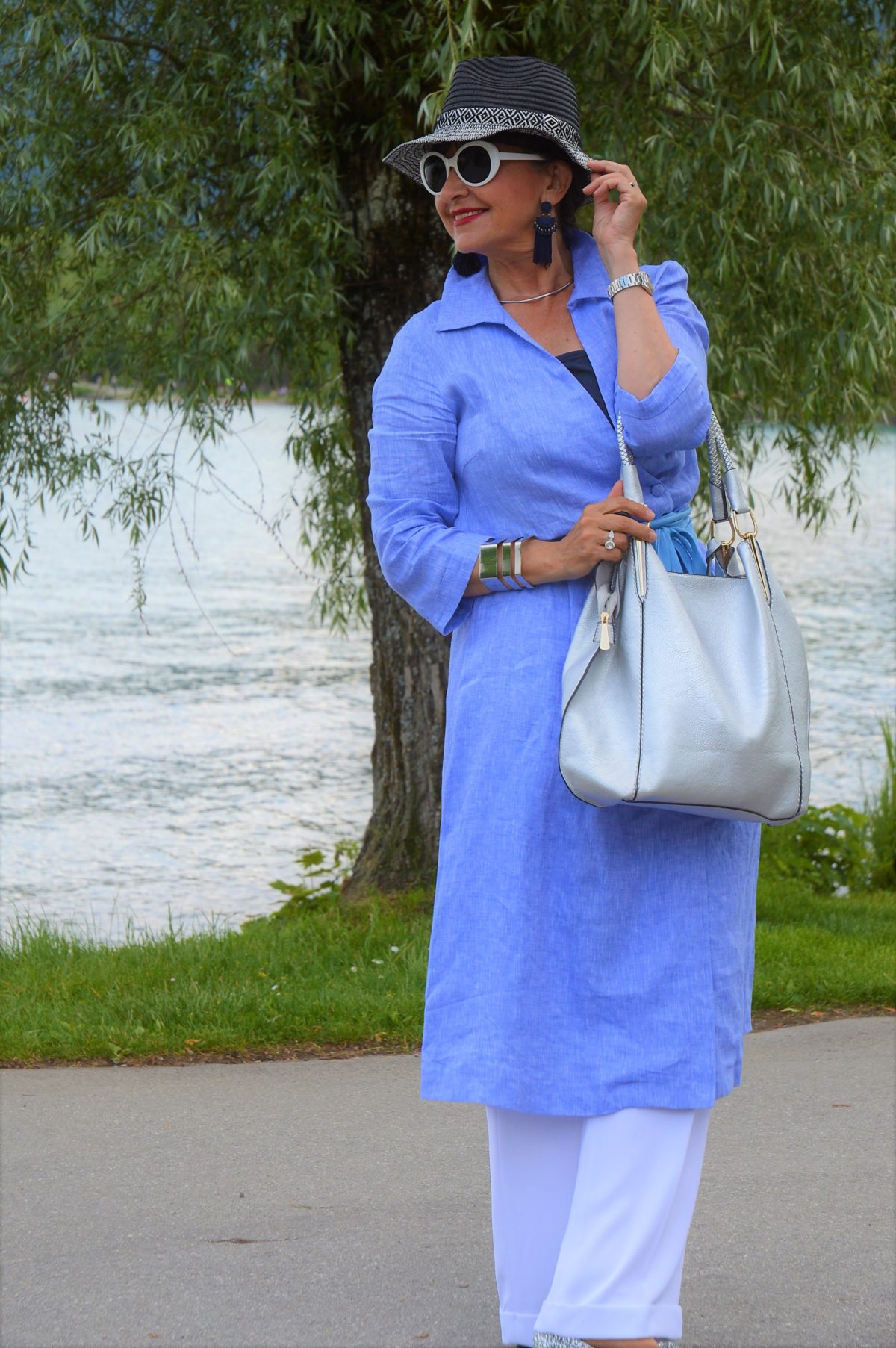 Ich freue mich so, auf einen Grillabend am See. Mit meiner etwas anderen Outfit Inspiration bringe ich Euch bestimmt zum Staunen. Kleid und Hose – und das noch bei mir? Bis vor einigen Wochen für mich unvorstellbar. Veränderungen sind dazu da, sie umzusetzen. Die Hose ist vom weißen Hosenanzug – siehe Montag.