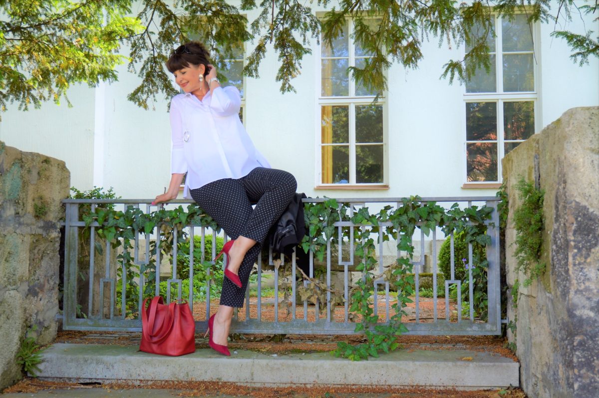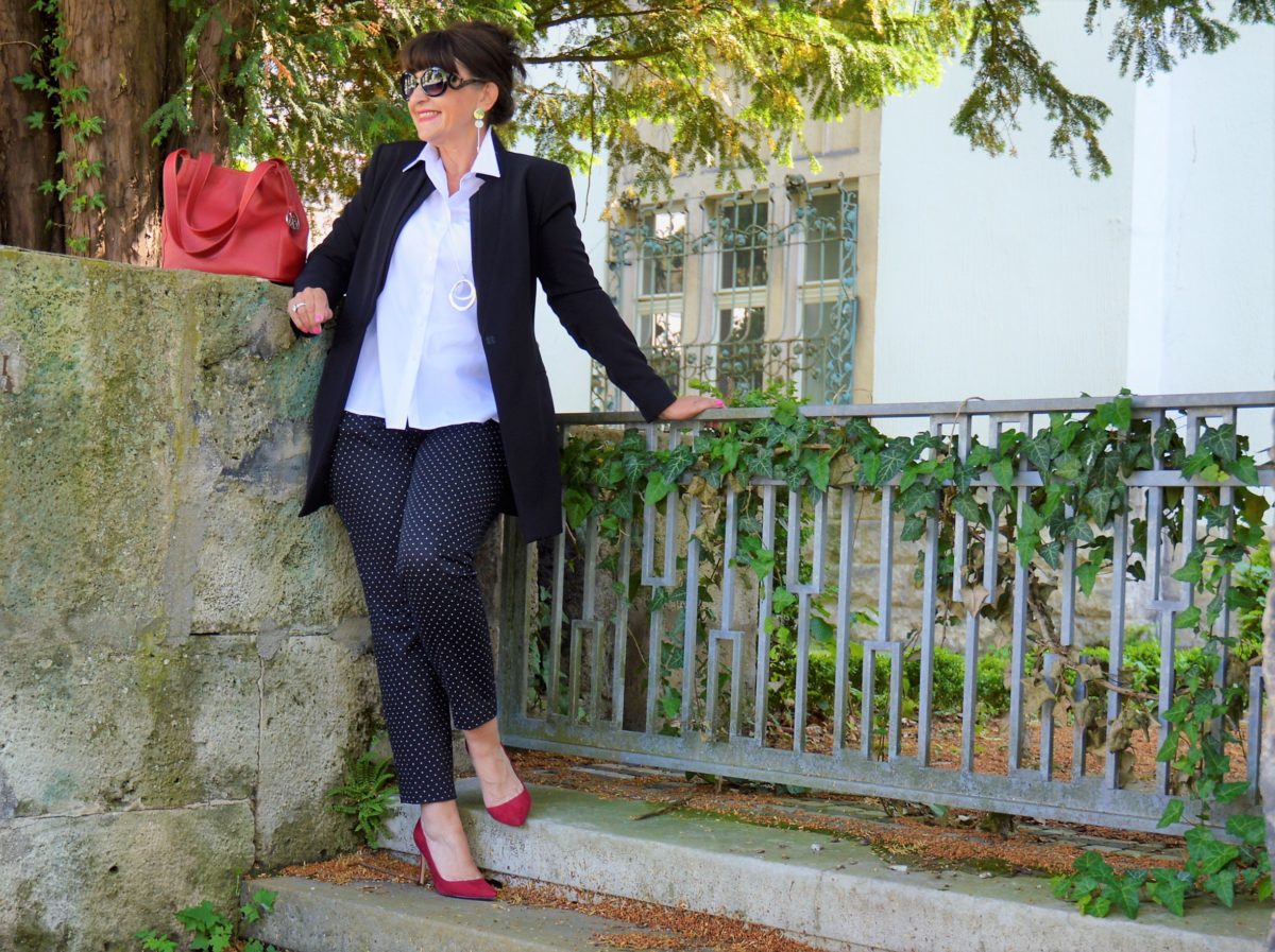 Black and White – it’s like day and night. Vor langer langer Zeit war es ein Lied – erinnert sich die ein oder andere von Euch noch daran? Der klassische Stil lässt viel Spielraum für den schicken Bürolook. Meine Hose mit den kleinen Polka Dots gibt der Kleidungswahl den modischen Kick.