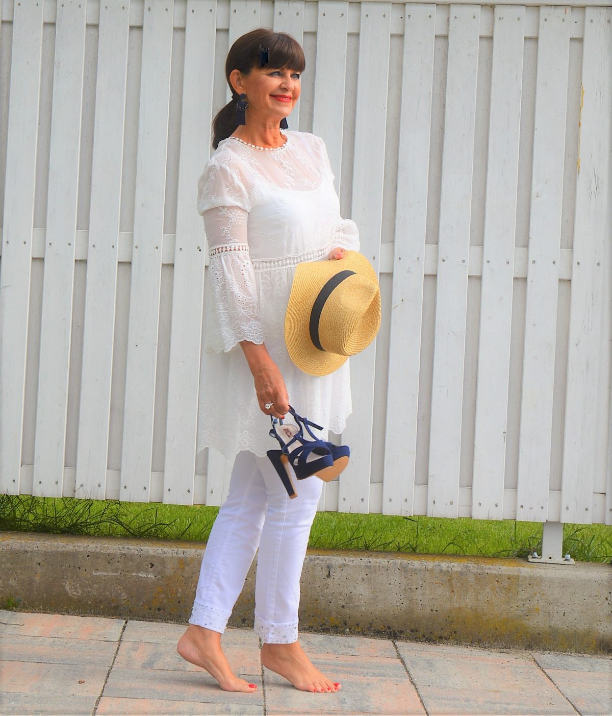 Luftige leichte Sommermode in weiß gefällt mir ausgesprochen gut. Ganz in weiß gekleidet zu sein, versetzt mich eine Stimmung, wie an einem Sommerabend im Urlaub. Und falls der nächste Urlaub noch etwas dauert, oder schon vorbei ist, passt ein all-over-White Look bestimmt wunderbar zum nächsten Gartenfest.