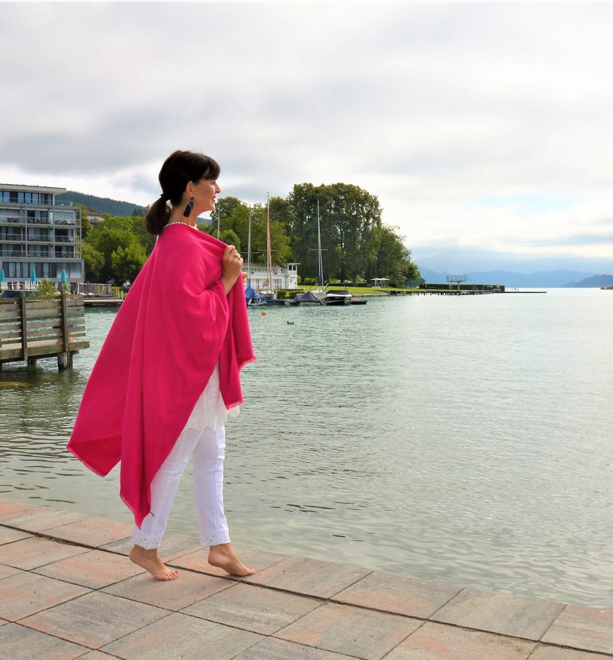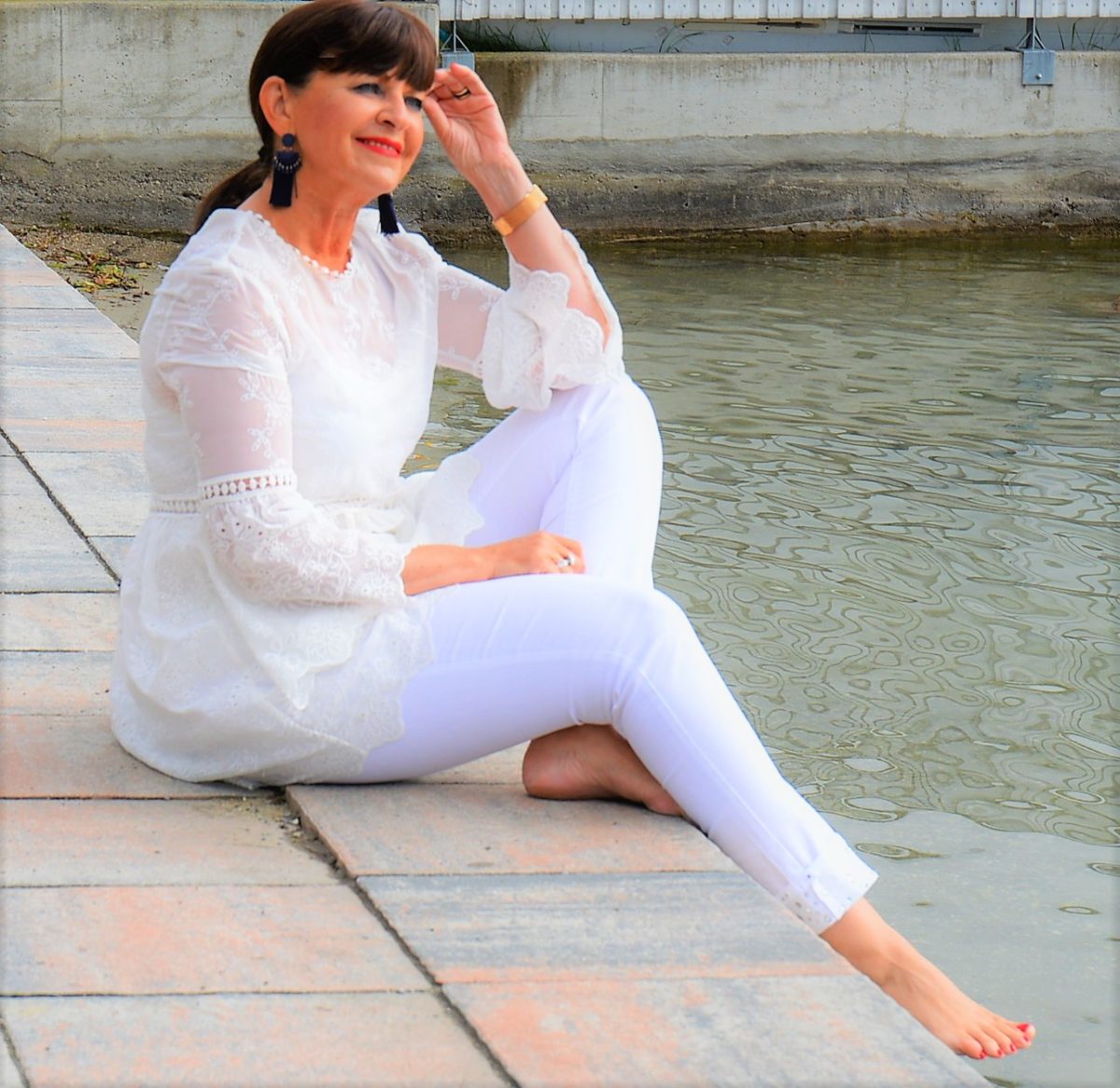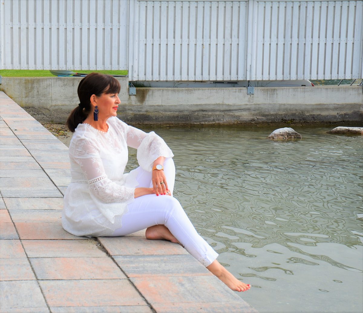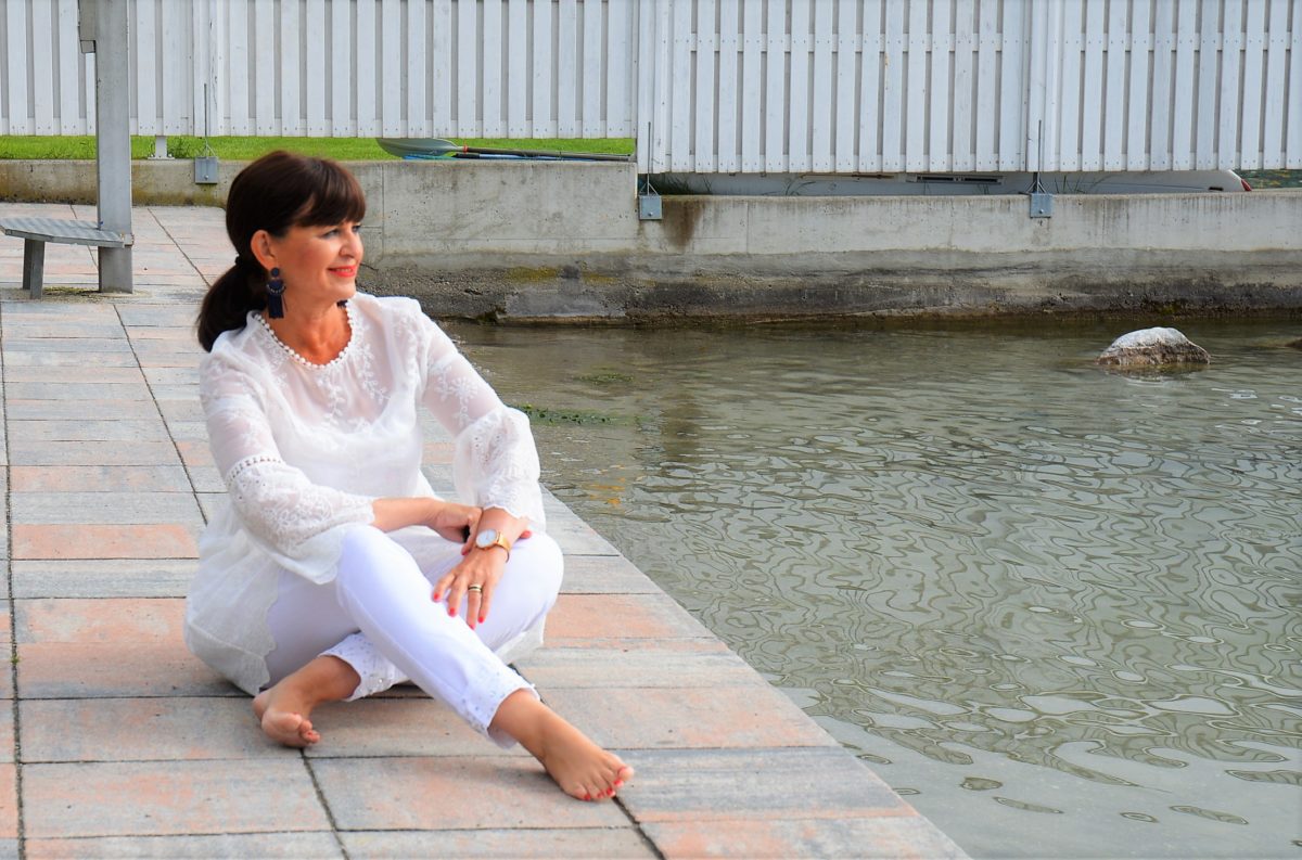 Wunderschön sieht der All-Over-White Look bei Dir aus. Außerdem hast Du Dir den besten Ort ausgesucht um diese fantastischen Fotos zu shooten. Velden ist ja bekannt für seine Fete Blanche Feste und Du würdest perfekt dorthin passen. Mit der leichten Tunika sieht es richtig sommerlich und elegant aus. Eine traumhafte Inspiration und ich werde den Look im Urlaub sicher nachstylen.