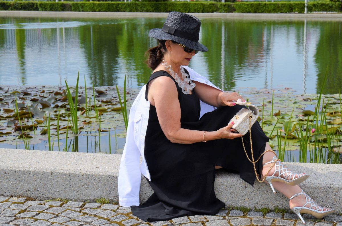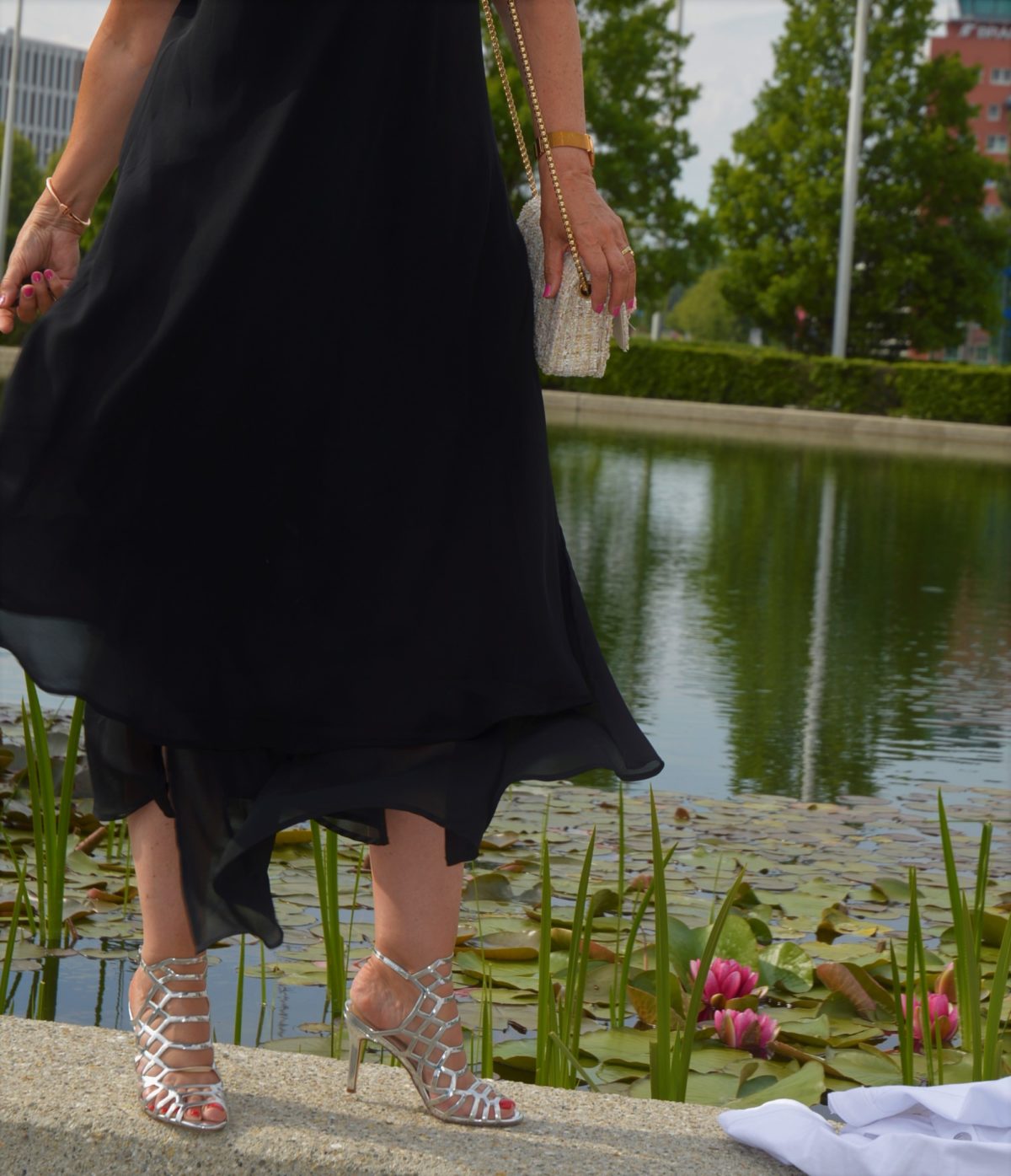Das leichte sommerliche schwarze Kleid eignet sich wunderbar für einen Theaterbesuch. In München gibt es im Bayerischen Hof die Komödie. Ein kleines Theater, mit einer besonderen Atmosphäre. Bis Mitte Juli wird eine Komödie mit der zauberhaften Mariella Ahrens aufgeführt. Für diesen Anlass werde ich mein Kleid mit den silberfarbigen Highheels tragen. Das macht den Look für den Theaterbesuch auf jeden Fall stilvoll.