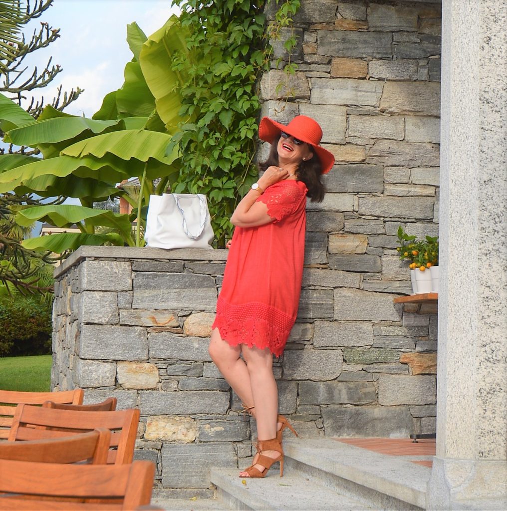 Rot ist die natürliche Eyecatcher-Farbe und besonders mit dem auffälligen Hut bist du der personifizierte Sonnenschein. Auch die tollen braunen Sandaletten als Kombination dazu – so wundervoll!