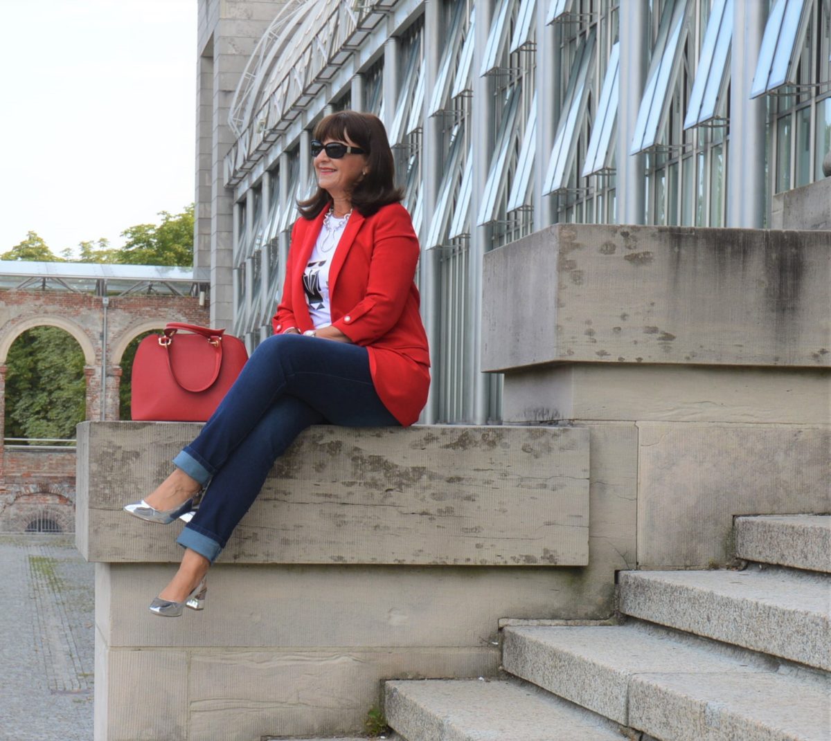 JEans und roter Blazer