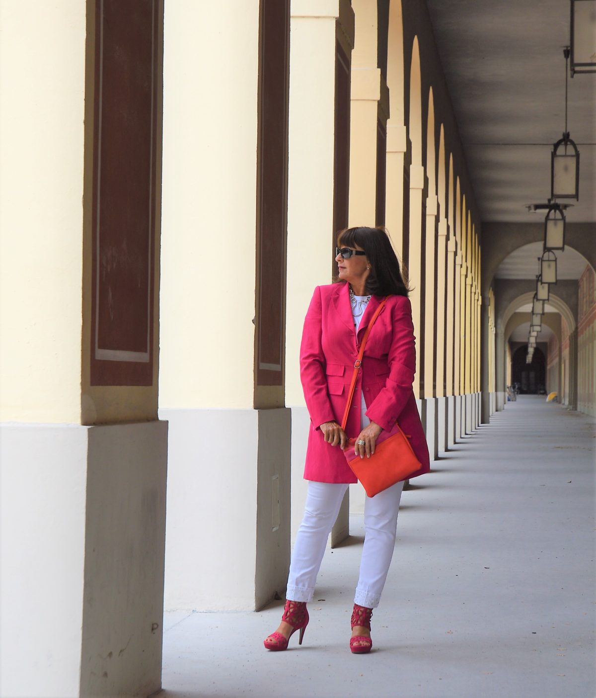 A fantastic look Martina with this pink blazer matching perfectly the gorgeous high heels as well as the white pants! Superb!!!