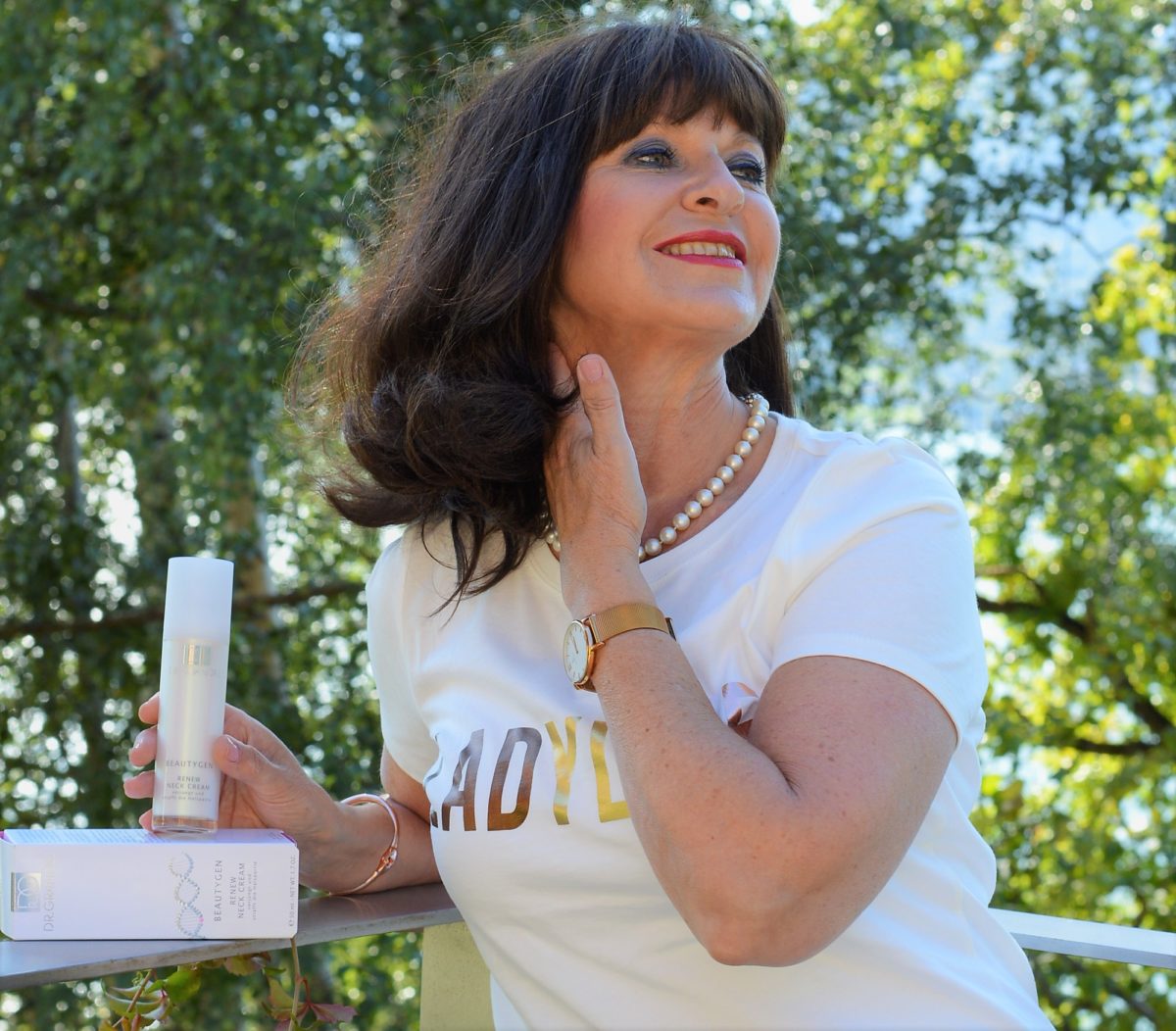 Ich muss zugeben, dass mit Ü50 die Halspartie eher schlaff ist und einige Lebenslinien aufzeigt. Da ich meine Fotos auf meinem Blog nicht mit aufwendiger Filterbearbeitung verändere, sondern mich zeige, wie ich wirklich aussehe, stört mich die Halspartie immer mehr. Eine Lösung muss her!