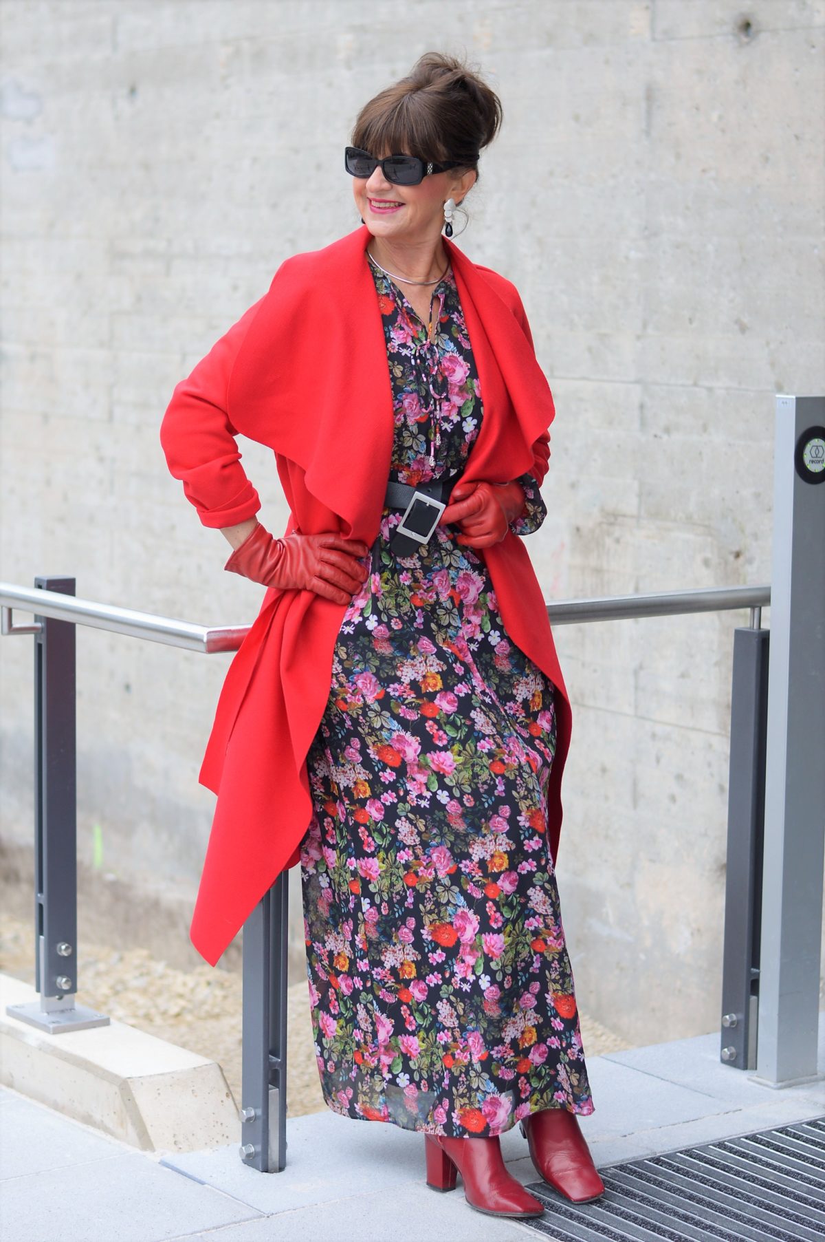 dir steht das Blumenkleid sehr gut, wobei mir deine klassischen, eleganten Looks noch besser gefallen. Ich persönlich könnte so einen Look nie tragen, ich würde darin wie verkleidet aussehen. Deinen roten Mantel würde ich dafür mit Kusshand nehmen. Den finde ich einfach wundervoll.