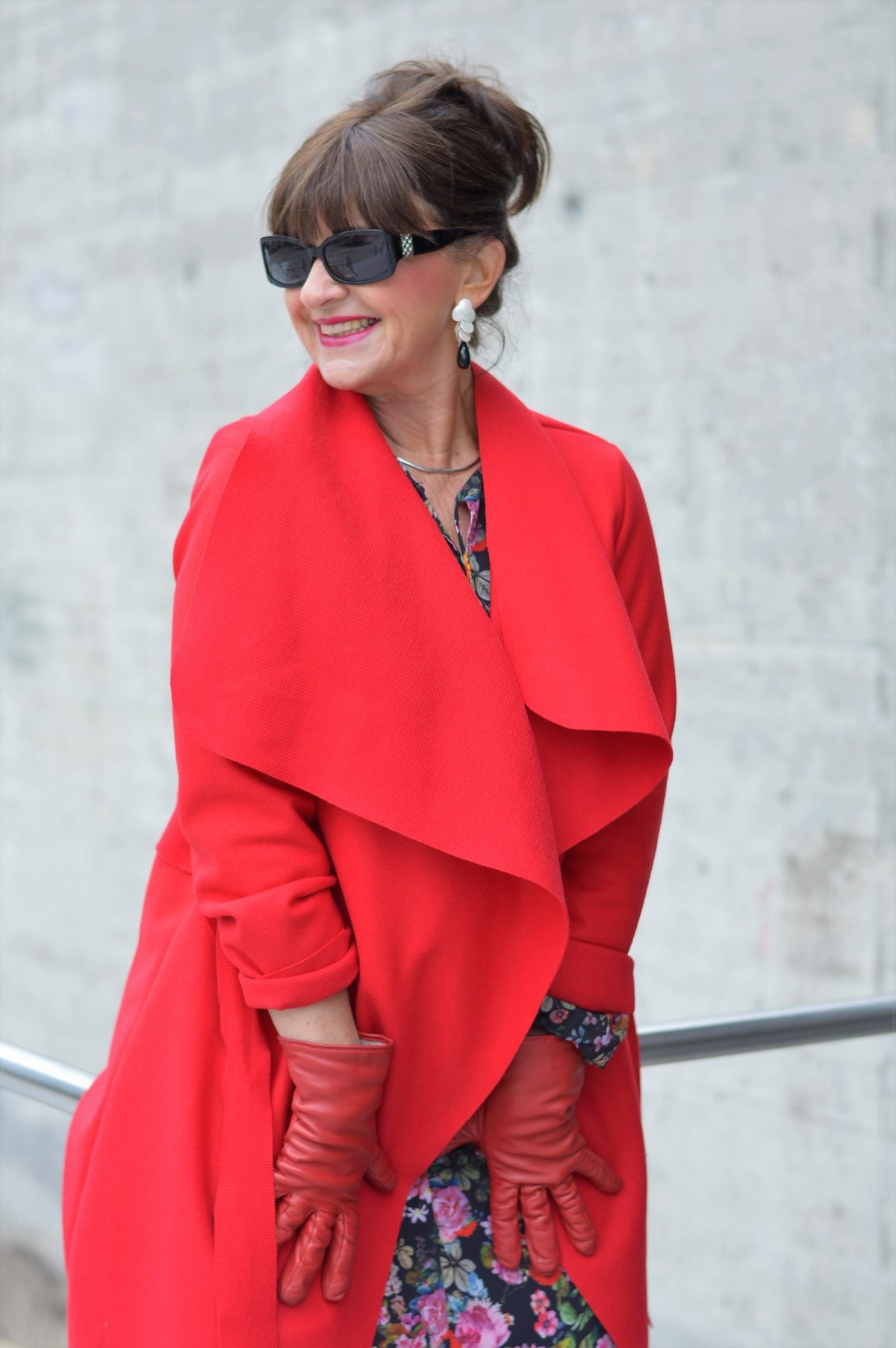 es ist schön und mein Anliegen, immer wieder Veränderungen zu zeigen, und zwar auch Veränderungen an mir – in den unterschiedlichsten Stilrichtungen. Gut, dass wir alle unterschiedliche Stilrichtungen an uns lieben – oder eher weniger mögen. FRAU sollte sich in ihrem LOOK einfach nur wohlfühlen, das ist das wichtigste an unserer Persönlichkeit und Ausstrahlung. Ja, der rote Mantel ist ein Allrounder in meiner Garderobe, vor kurzem habe ich ihn zu einer schwarzen Lederleggings getragen – auch ein Hingucker.