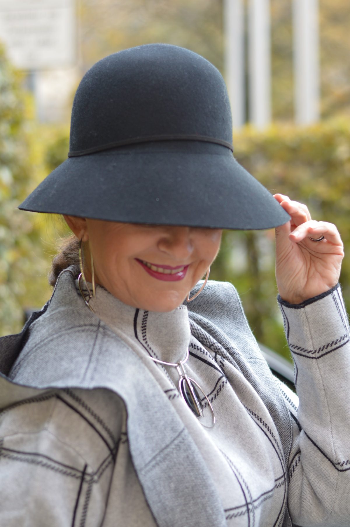 Ich muss mich wiederholen. Als von Euch ausgezeichnete Titelträgerin „Königin der Accessoires“ lasse ich mir immer wieder gerne neue Varianten für einen Look einfallen. Heute greife ich zum Hut, denn bei diesem Wetter ist es für mich ein toller Begleiter, schick und pfiffig zu wirken. Mut zum Hut kann ich nur jeder Lady empfehlen. Viele von Euch haben sich schon gewagt, und tragen spätestens seit dieser Saison einen Hut.