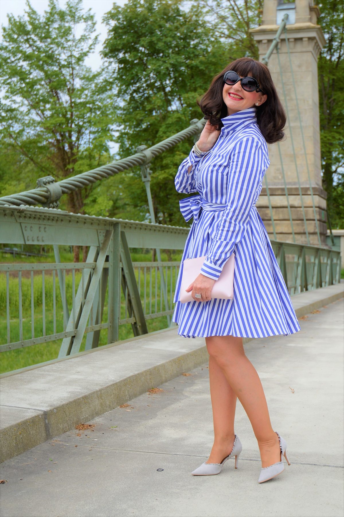 Ich weiß gar nicht, wie lange das Hemdblusenkleid bereits eines der beliebtesten Kleider ist. Schon meine Mutti trug Hemdblusenkleider in verschiedenen Farben. Ich habe mich in das gestreifte Hemdblusenkleid von Betty Barclay auf den ersten Blick verliebt. Mal mit Blazer, mal mit Mantel, oder solo. Mit diesem Outfit habe ich es im letzten Jahr sogar in die „BUNTE“ geschaftt – WOW! Braucht ein Kleid noch mehr Zuspruch?