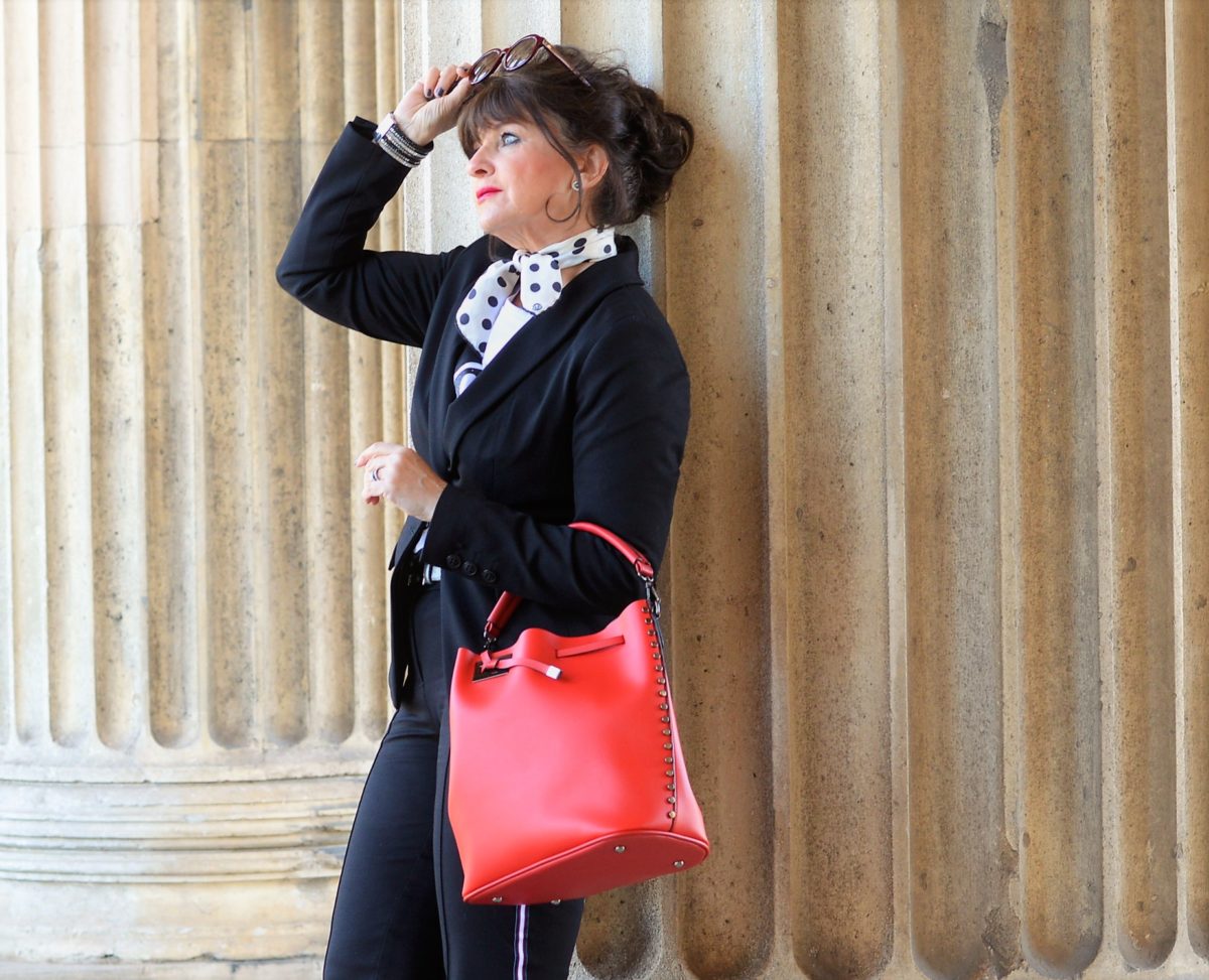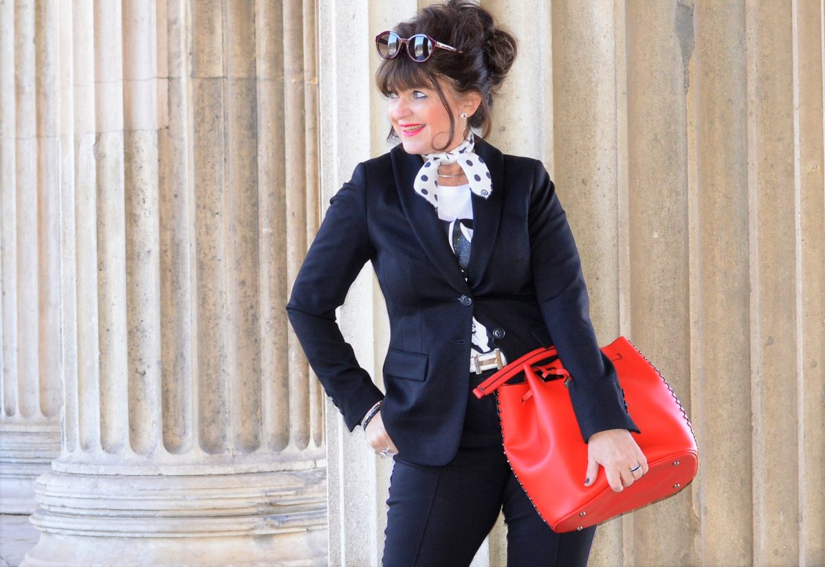 ich mag SCHWARZ (eh schon wissen) und die Kombi mit Pünktchentuch bzw.Schal ist genial. Dazu knallrot – ich kann mich nur wiederholen, es werden sich viele nach Dir umdrehen.!! Auch hier wiederhole ich mich: ich liebe Deine Looks, sie sind tragbar und auch Jahreszeit bezogen, dadurch bist Du immer wieder Inspiration für uns. Ich muss immer wieder schmunzeln, wenn ich Damen in Sommerschühen (ohne Strümpfe) oder Trägertops im Schnee stehen sehe.