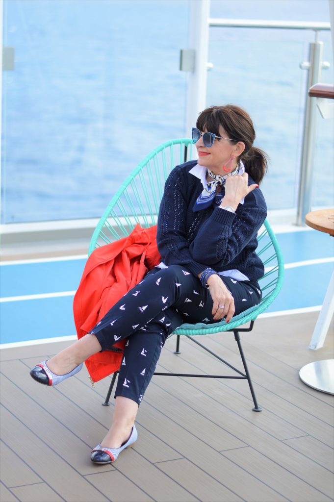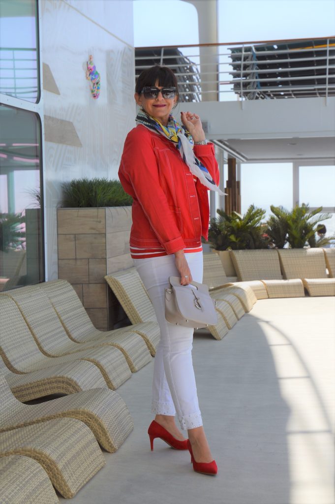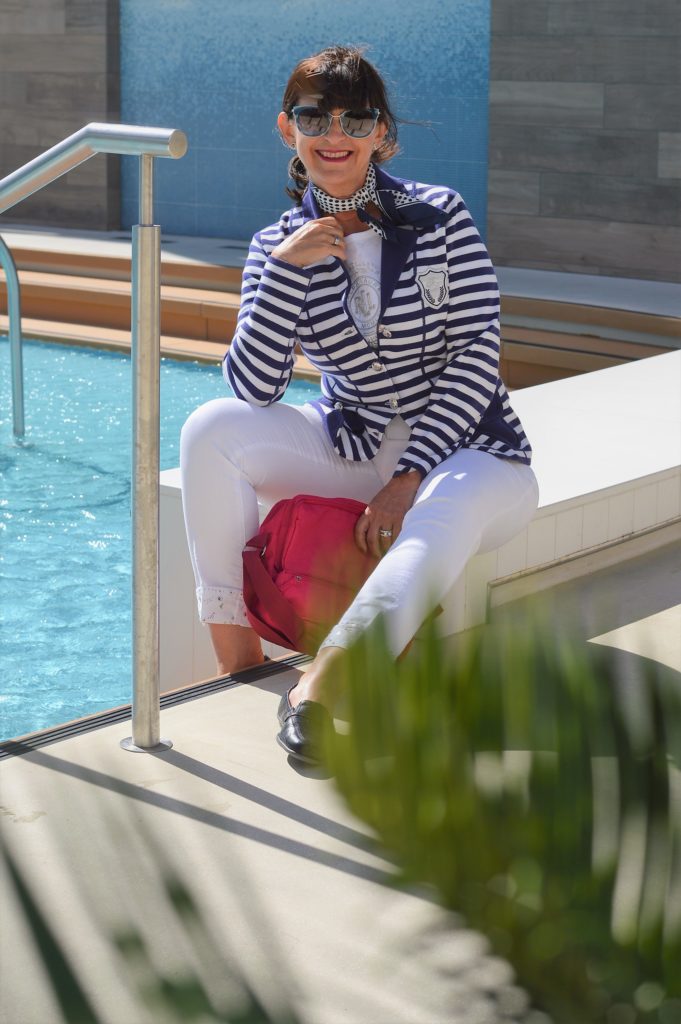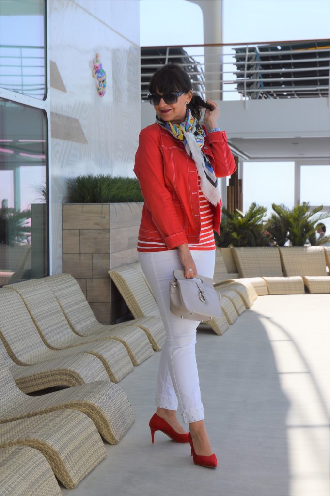 Der maritime Look in den Farben rot – weiß – blau ist ein absoluter Klassiker in der Modewelt. Diese Farben lassen sich so vorteilhaft und vielfältig mit einander tragen. Der Look kann für den Landausflug oder für ein gemütliches Abendessen unter freien Himmel auf dem Außendeck gestylt werden.