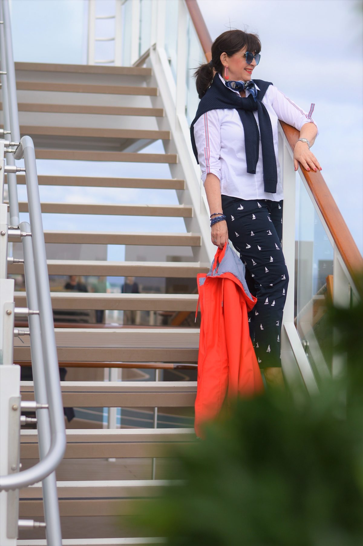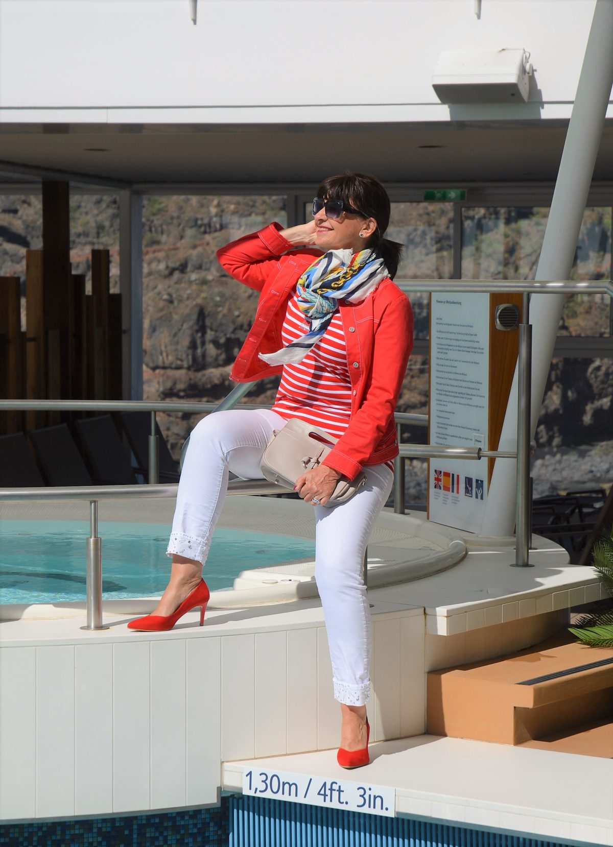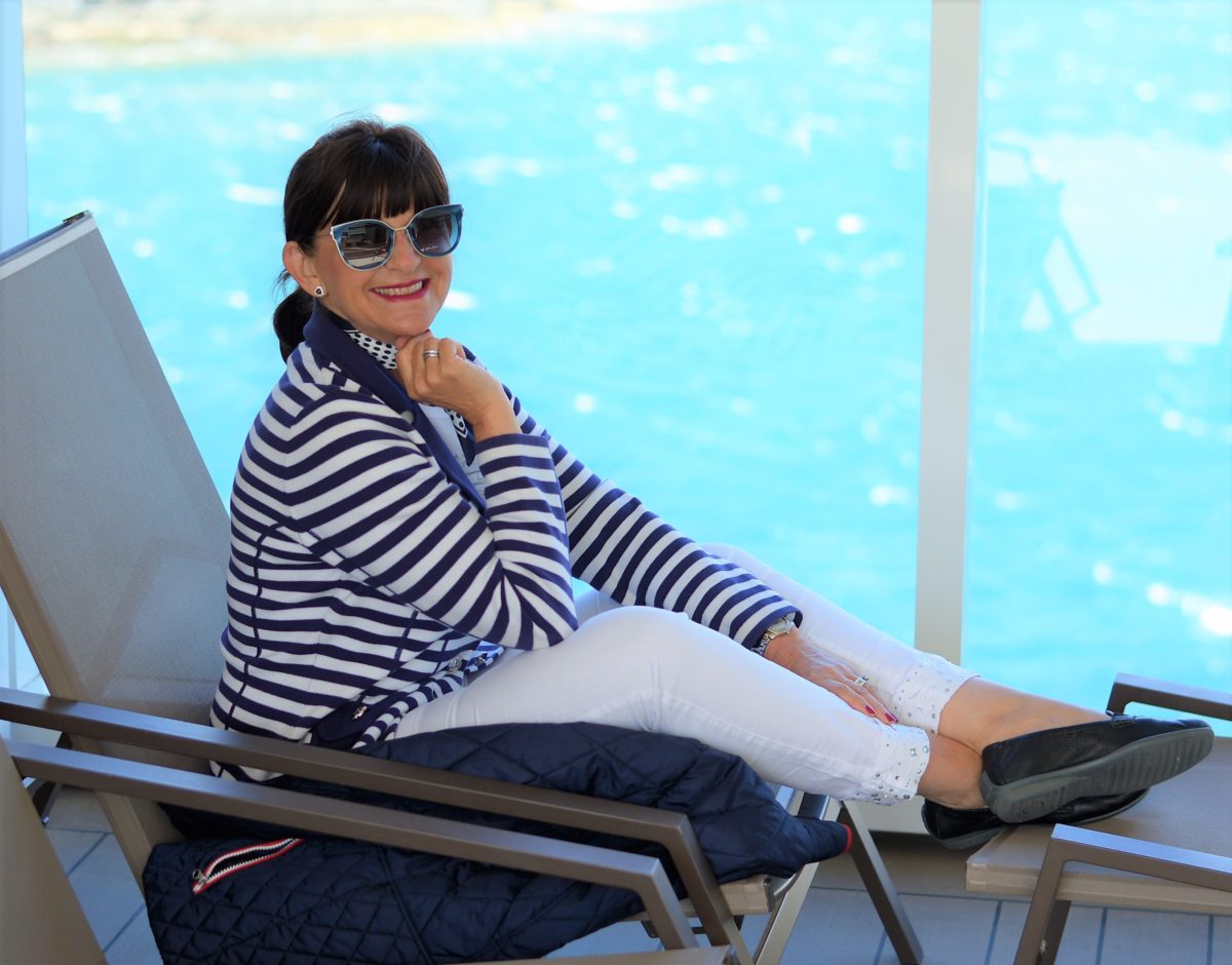 Der maritime Look in den Farben rot – weiß – blau ist ein absoluter Klassiker in der Modewelt. Diese Farben lassen sich so vorteilhaft und vielfältig mit einander tragen. Der Look kann für den Landausflug oder für ein gemütliches Abendessen unter freien Himmel auf dem Außendeck gestylt werden.