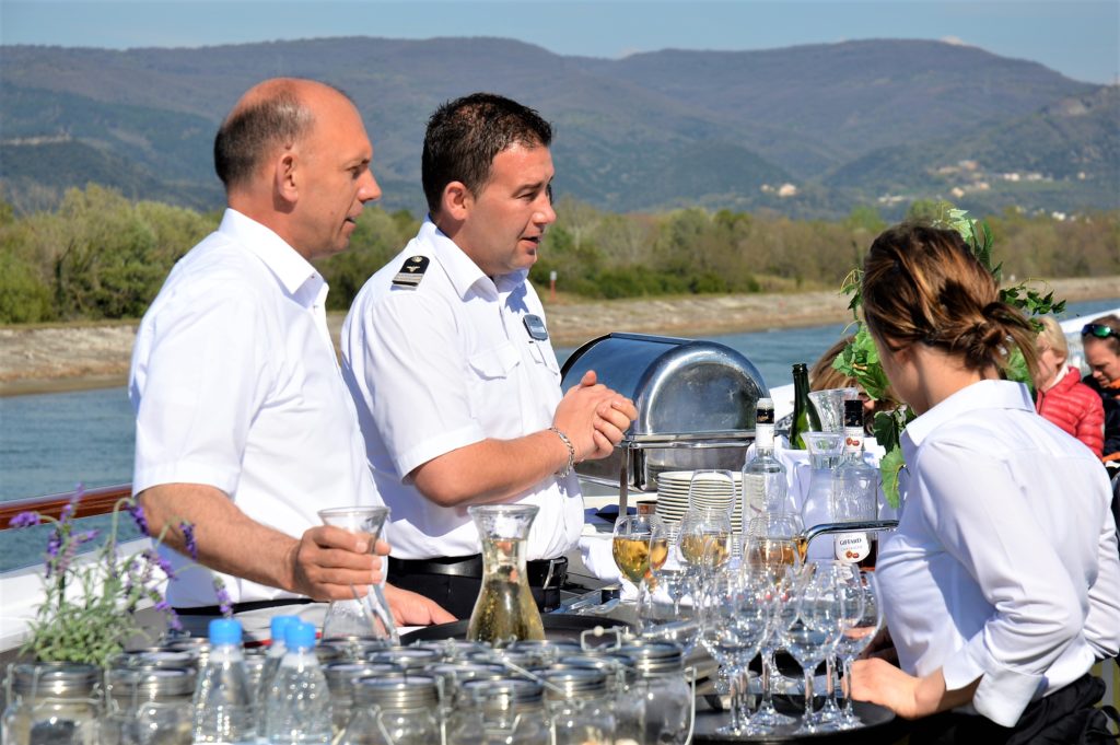 Am Vormittag sind wir in Richtung VIVIERS unterwegs. Laut A-ROSA Tagesjournal eines der am besten erhaltenen mittelalterlichen Städte Frankreichs. Die Flusskreuzfahrt wird uns am Vormittag mit einem „Matinée Rustique“ – auf Deutsch Frühschoppen – versüsst. Auf dem Sonnendeck wird frische Quiche mit stimmungsvoller französischen Musik serviert.