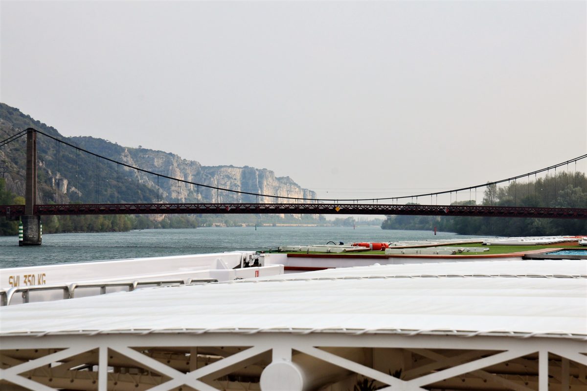 Gut, dass ich meine Wind- und Wetterjacke dabei habe. Es scheint zwar die Sonne, aber es ist extrem windig und etwas frisch auf der Rhóne. Ein zweiter Punkt, der mich auf der Flusskreuzfahrt bereits enorm begeistert, ist der Panoramablick, den ich den ganzen Vormittag in vollen Zügen genieße.