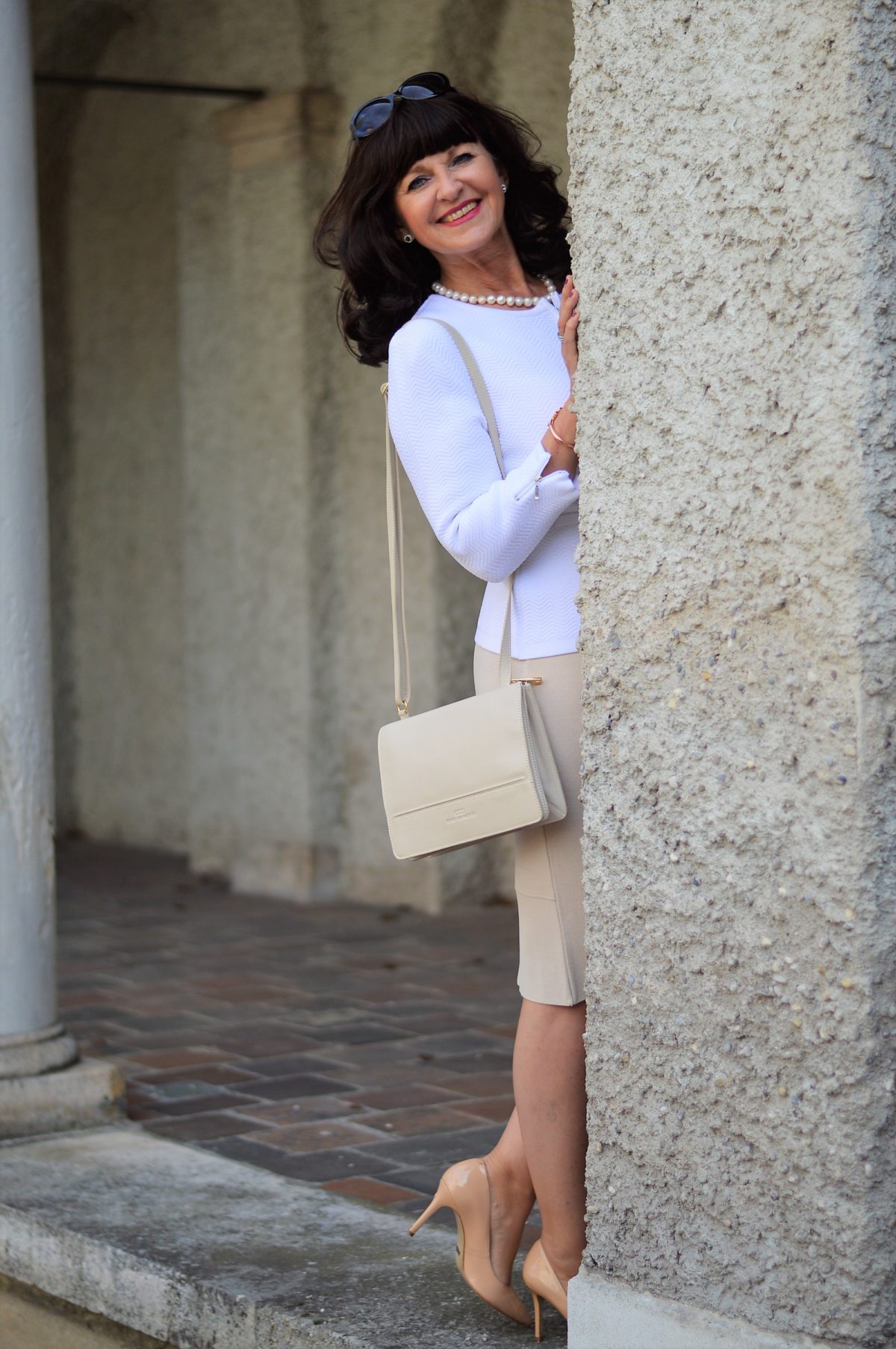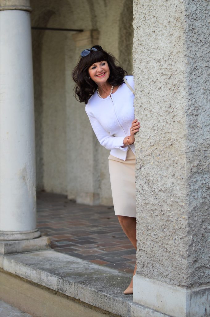 Der schicke Bleistiftrock wird mit dem weißen Cardigan kombiniert. Für diesen Look braucht es kein Event oder speziellen Anlass. Weiblichkeit pur fühlt sich für meinen Stil perfekt an.