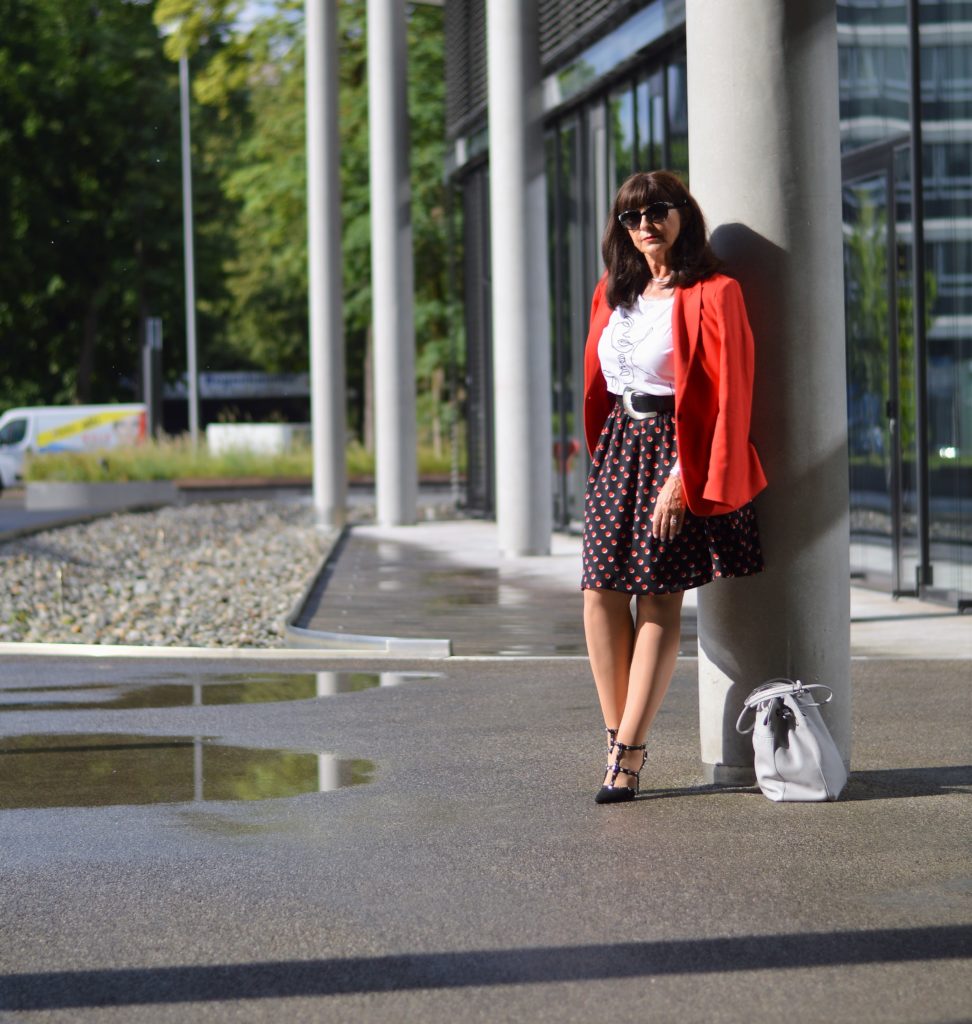 Es gibt Basisteile, die sollte jede Lady im Kleiderschrank haben. Eines davon ist der Blazer. Er lässt sich zu so vielen Outfits kombinieren. Ob seriös oder lässig, mit dem richtigen Blazer ist alles möglich. Um mit meinem Sommerrock einen businesstauglichen Eindruck zu hinterlassen, kombiniere ich ihn mit einem roten Blazer.