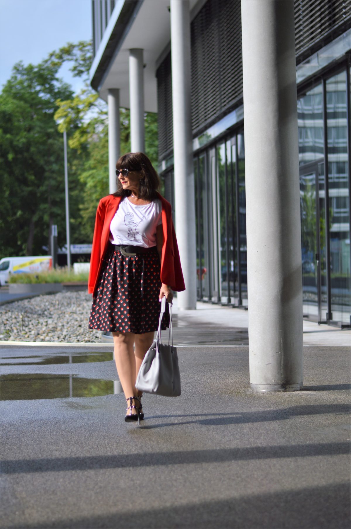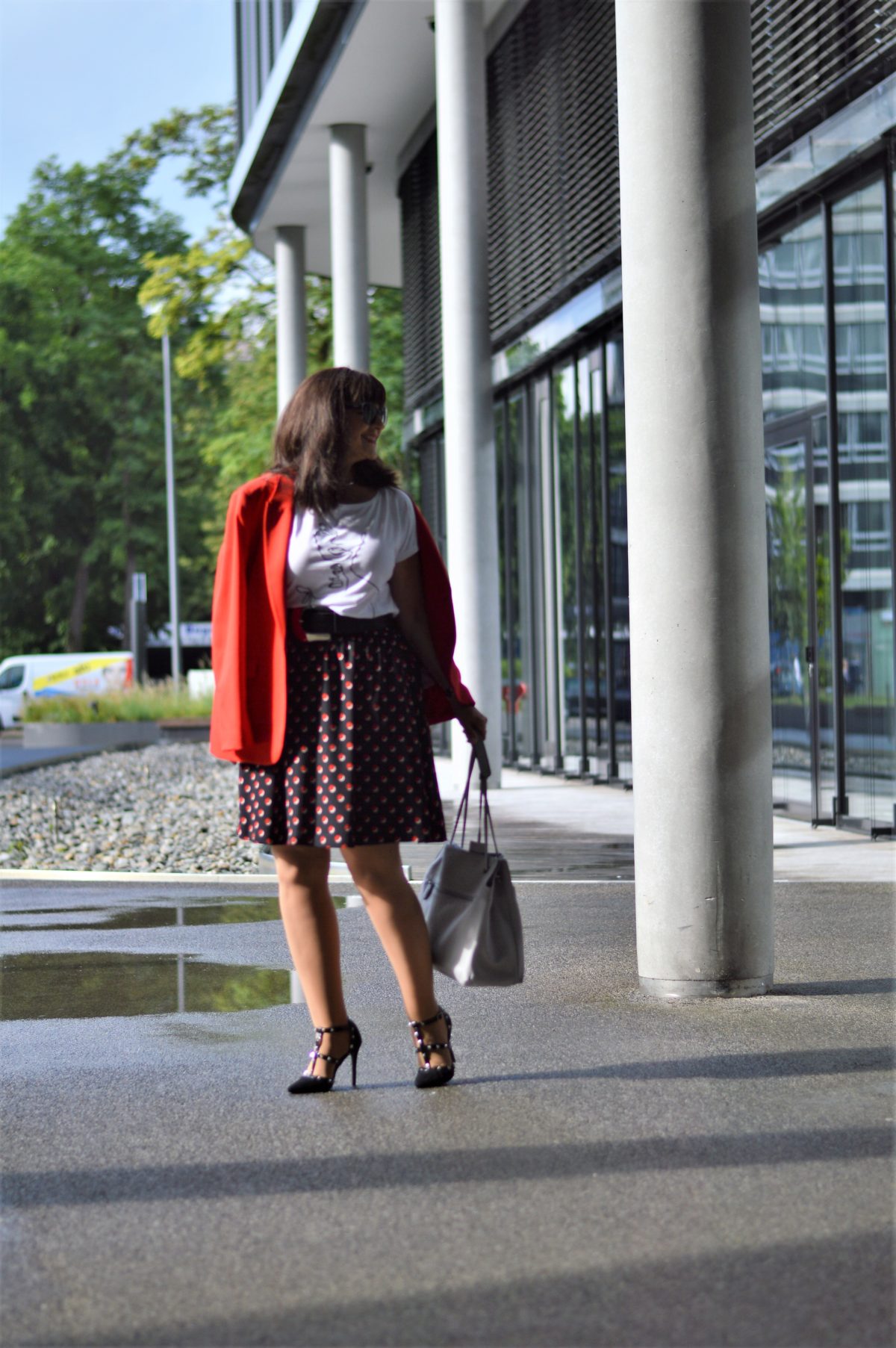 Es gibt Basisteile, die sollte jede Lady im Kleiderschrank haben. Eines davon ist der Blazer. Er lässt sich zu so vielen Outfits kombinieren. Ob seriös oder lässig, mit dem richtigen Blazer ist alles möglich. Um mit meinem Sommerrock einen businesstauglichen Eindruck zu hinterlassen, kombiniere ich ihn mit einem roten Blazer.