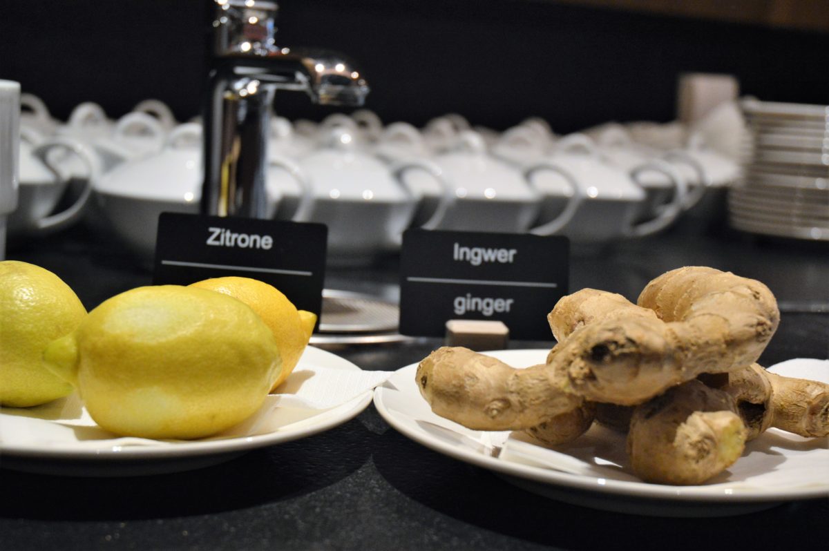 Besonders hat es mir der „Saftladen“ angetan. Jeden Morgen presse ich mir einen selbst kreierten frischen Saft. Es ist immer frisches Obst und Gemüse vorhanden. Eines kommt täglich in den frischen Saft – Ingwer und Zitrone.