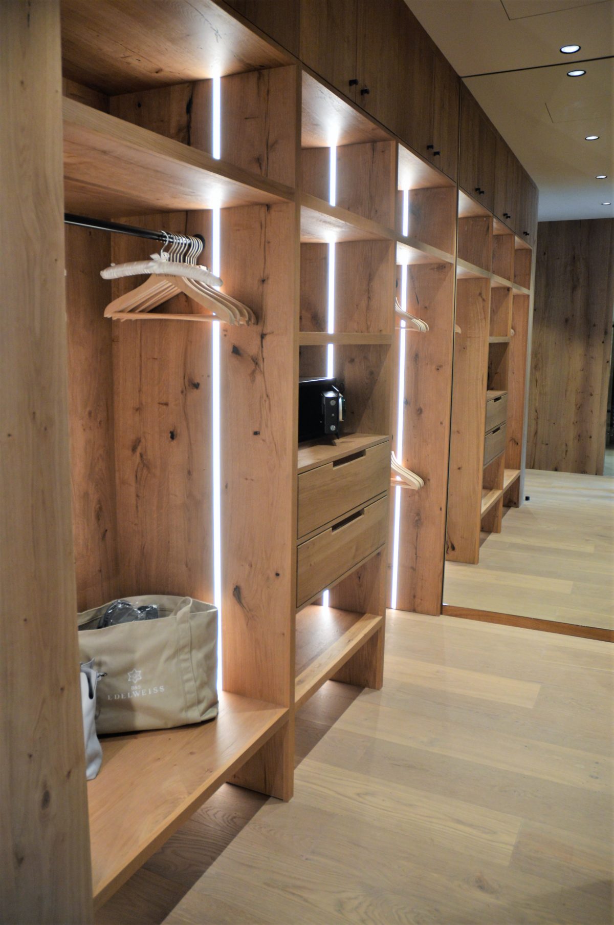 Mein Herz schlägt höher, als ich den offenen und geräumigen Schrankraum entdeckt habe. Endlich Platz für alle (zu viel) mitgebrachten Outfits.