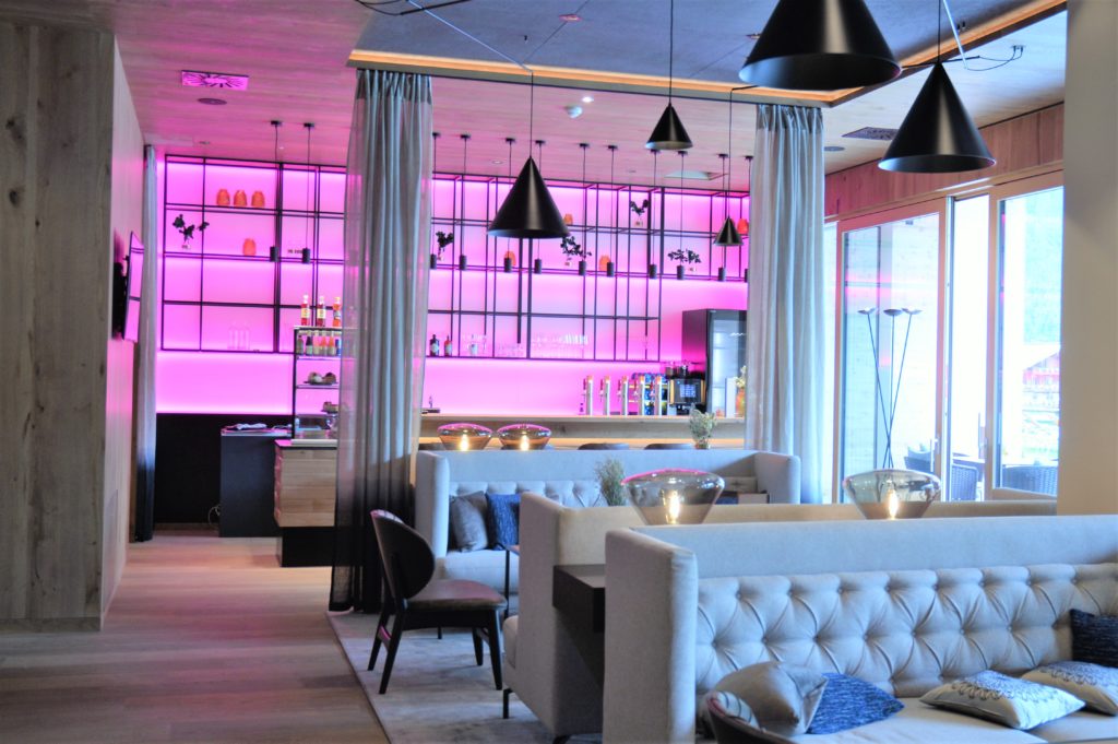 Der Bereich bietet außerdem elegante und behagliche Sitzgruppen für gemütliche Momente und abendliche Unterhaltung. Am Abend prasselt das Kaminfeuer und lädt zum langen Verweilen in der Alpin Lounge ein. Warum denn nicht, schließlich ist man im Urlaub.