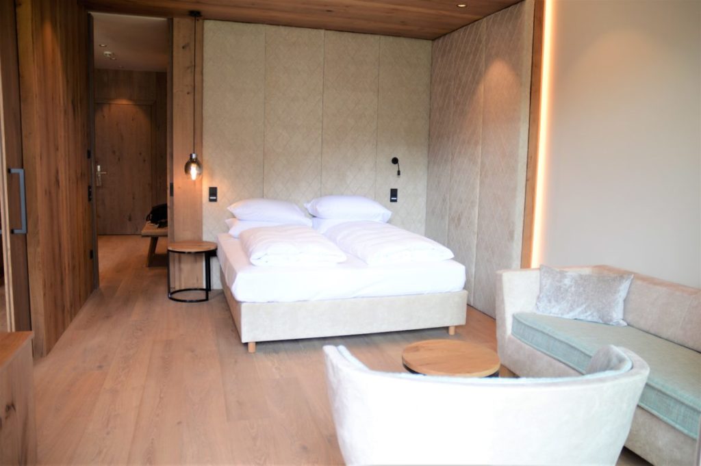 Modern und gleichzeitig traditionell die neuen Zimmer gestaltet. Alpine Wärme und zeitgenössisches Design verbinden sich zu behaglichen Wohlfühlräumen. Ich sage einfach: Luxus pur!
