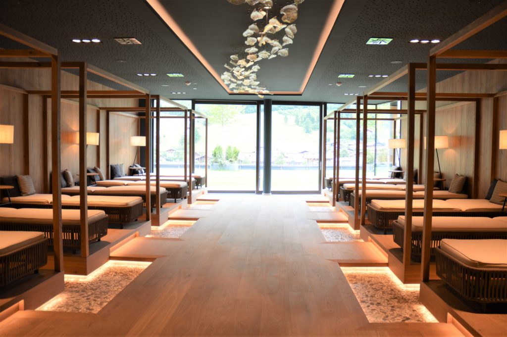 Beim Eintreffen in die neue Alpin Lounge bin ich beeindruckt, über die Großzügigkeit und die geschmackvolle Gestaltung des Bereiches. Wenn es so schon anfängt, was kann da noch kommen? – denke ich mir im Geheimen. Es wird noch besser! Aber alles Step by Step.