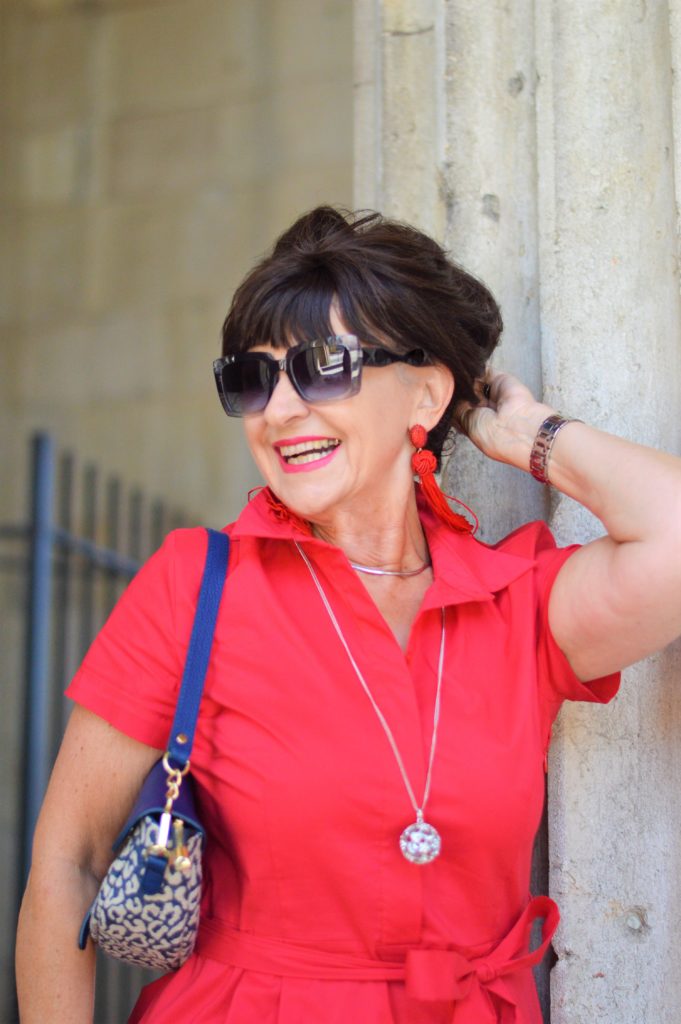 Wieder einmal spielen die Accessoires eine große Rolle. Meine aktuell geliebten roten Schuhe, rote Handtasche, modische Sonnenbrille und ein breiter Gürtel, um die Taille in Szene zu setzen. Eines meiner beliebten Accessoires ist aktuell das Haarband. Die bunten Tücher für die Haare sind wirklich angesagt. Schnell ist die Trendfrisur gezaubert. Mit einem klassischen Nickituch funktioniert der Look für tagsüber genauso gut wie für den Abendlook. Die Farbe der Tücher sollte sich auf jeden Fall in der Garderobe wiederholen.