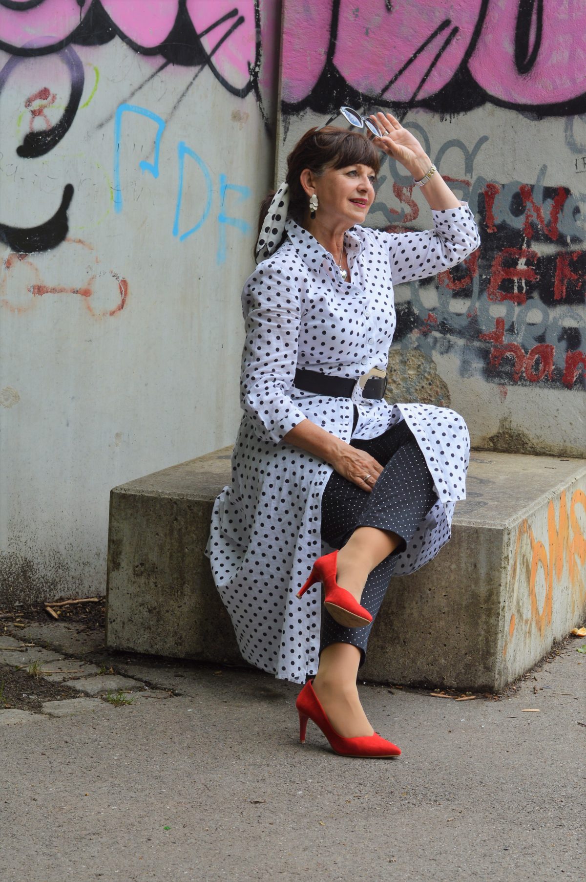 das rote Hemdblusenkleid ist zauberhaft und absolut zeitlos. Das werde ich ganz bestimmt in den nächsten Jahren immer wieder anziehen. Du bist die Erste, die sich für die Polka Dots entscheidet – danke dafür! Es erstaunt mich immer wieder, wie unterschiedlich die vorgestellten Outfits ankommen.