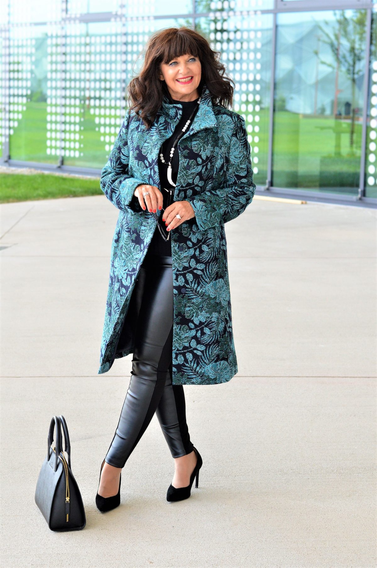 Jetzt kommen noch die Styles mit den Lederleggings, darauf stehe ich ja eh. Mit Maxiweste oder Mantel, finde beide Kombinationen super. Der Mantel gefällt mir besonders gut, ich liebe dieses Muster.