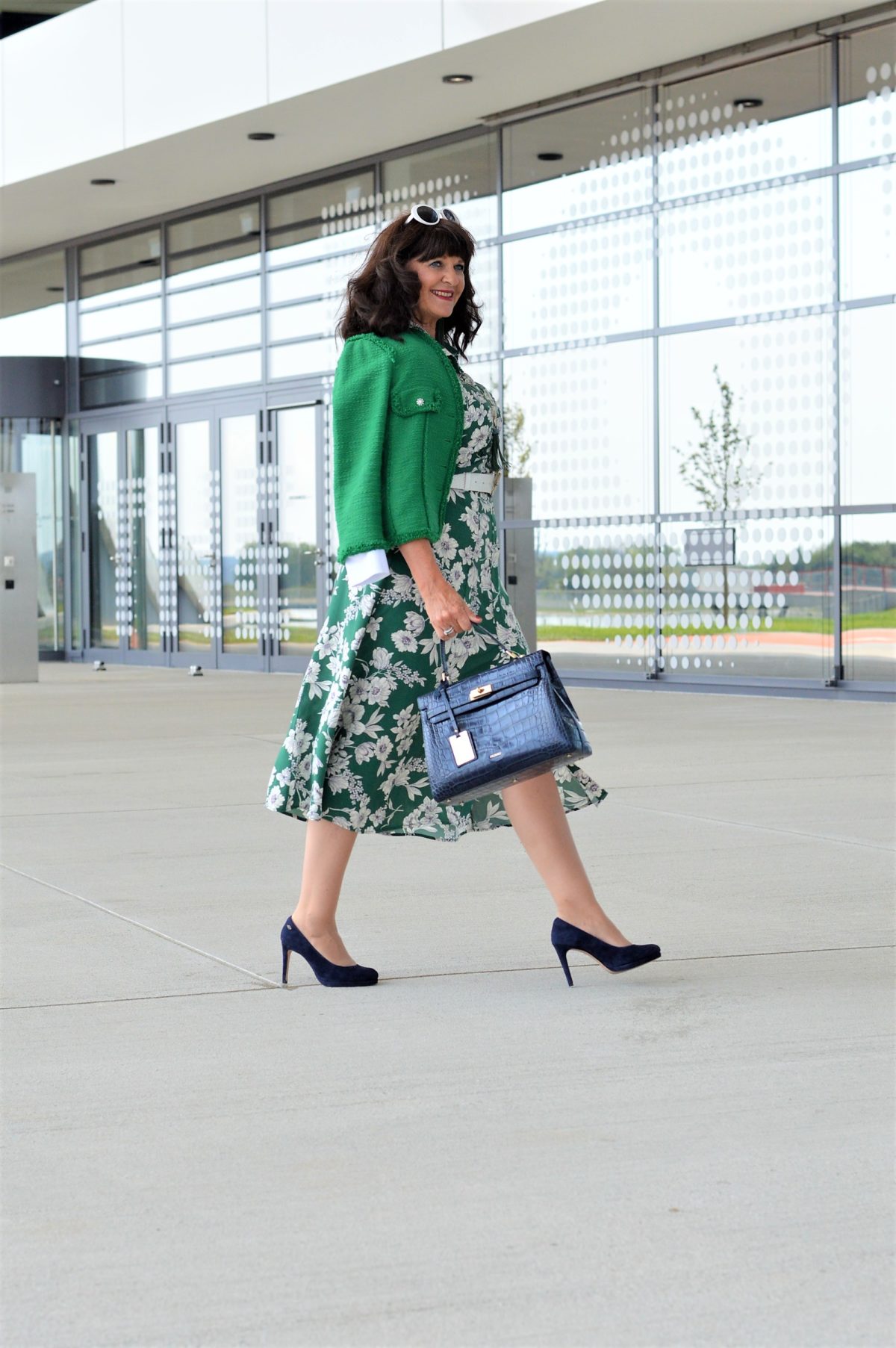 Immer gern gesehen als optisches Highlight, als „Verwöhnprogramm“ der Augen, ist ein Kleid, hier: in den Grüntönen mit Blazer und Pumps, in dem du den klassischen femininen Chic verkörperst, der für bürgerliche Eleganz steht, die ich sehr schätze!