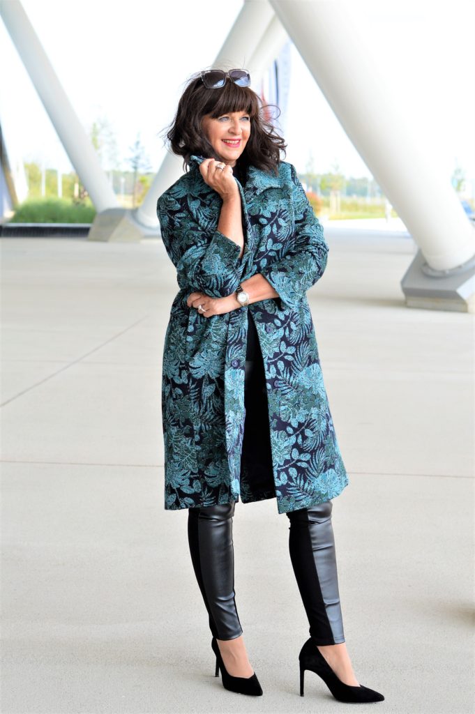 Jetzt kommen noch die Styles mit den Lederleggings, darauf stehe ich ja eh. Mit Maxiweste oder Mantel, finde beide Kombinationen super. Der Mantel gefällt mir besonders gut, ich liebe dieses Muster.