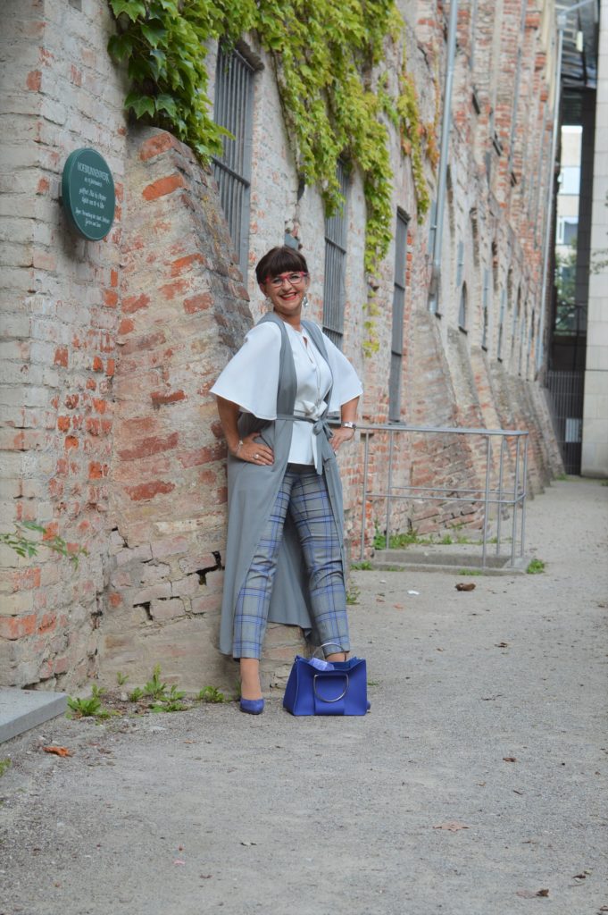 was für ein Zufall, dass Du eine graue Weste im Schrank hast. Ich bin sicher, dass sie bald wieder mehr ans Tageslicht kommt, stimmt’s? Eine Karohose ist bestimmt ebenfalls in Deinem Schrank und so dürfte es ein Leichtes sein, den Look 1:1 nachzustylen. Viel Freude damit!