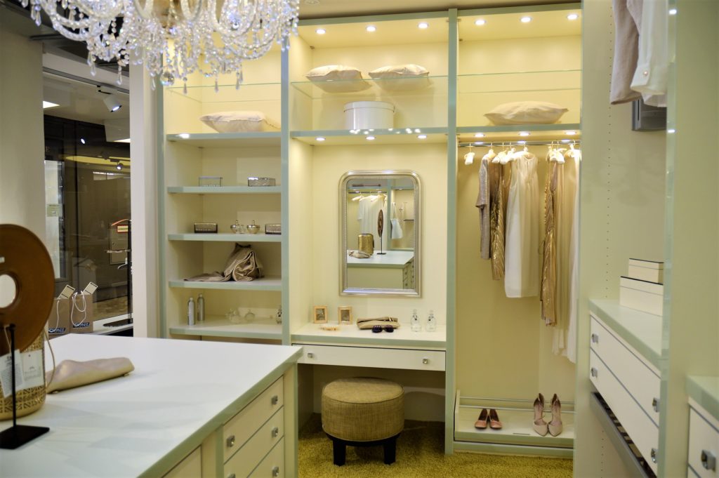 ein Ankleidezimmer ist der Traum jeder Lady – da sind wir beide bestimmt nicht allein. Mich hat die Möglichkeit der Taschenaufbewahrung beeindruckt. Extra Fächer sind dafür vorgesehen, so dass jede Tasche gut sichtbar aufbewahrt werden kann. Und für Hüte ist in der passenden Hutschachtel ganz gewiss genügend Stauraum im obersten Bereich des Schrankes vorhanden.