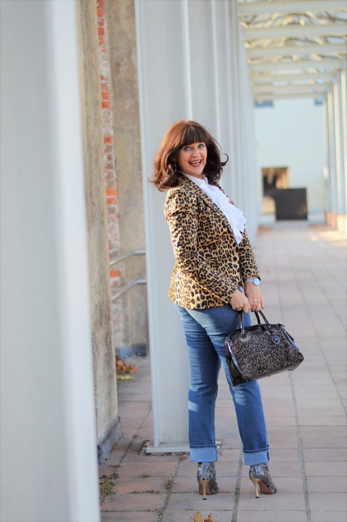 da bist Du ja eine richtige Leo-Print-Lady. An manchen Frauen sieht es auch richtig Klasse aus. Die Kombination mit mehreren Leo-Prints trage ich wirklich nur ausnahmsweise, ganz gewiss nur in der Freizeit und niemals im Business-Bereich. Als Fashion-Bloggerin darf FRAU etwas mutiger sein, um zu zeigen, was in uns Mädels 50plus alles drin steckt 🙂