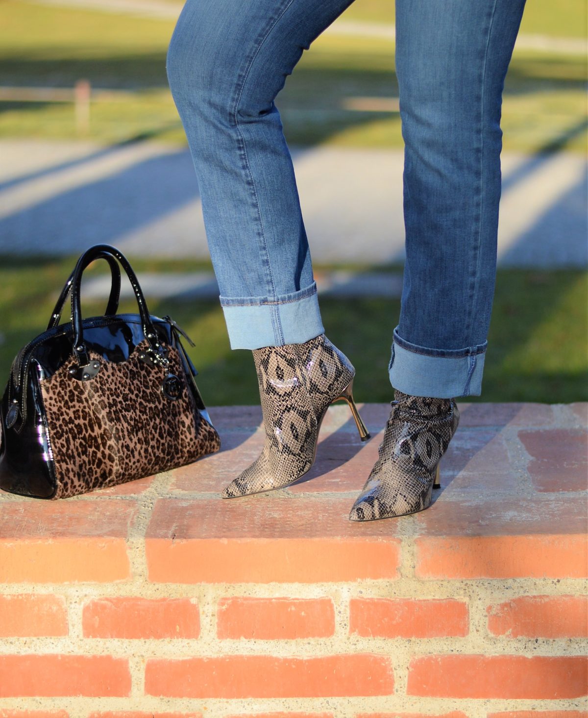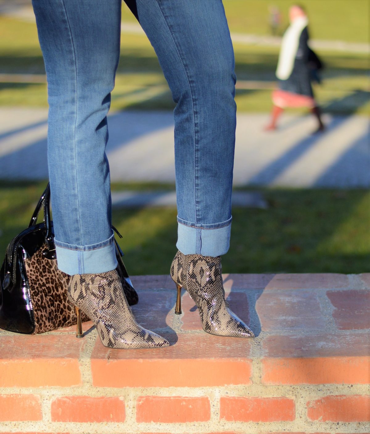 Dir steht der Leoblazer sehr gut, Du solltest ihn öfter tragen. Egal ob zum Kleid, zur Jeans oder zum Rock, alle drei Looks sehen bezaubernd aus. Die Snake Print Stiefeletten und die Tasche mit Leomuster sind sehr schön und passen prima zu den Outfits.