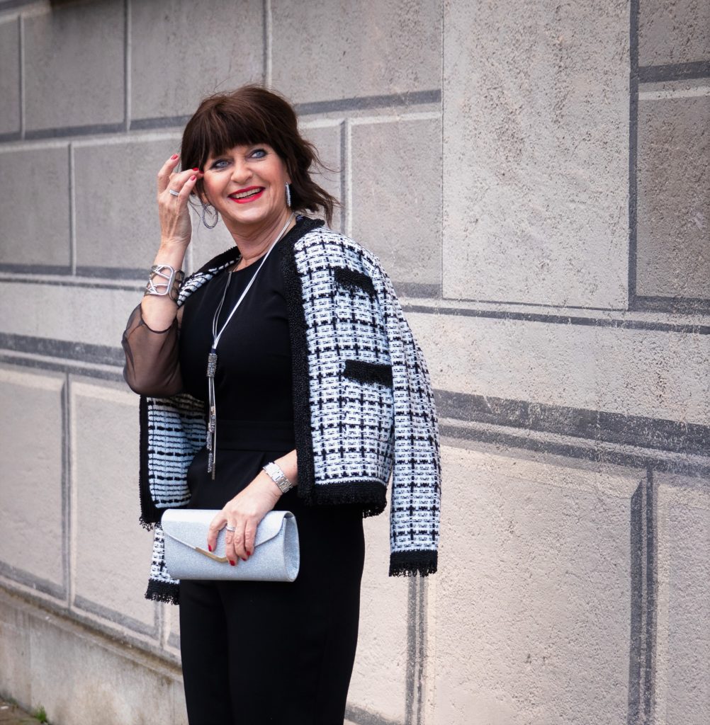 Vor kurzem hatte ich meine Leserinnen gefragt, welche Themen sie besonders interessieren würden. Da kam der Wunsch auf, mehr zum Thema Ausgehlook 50plus vorzustellen. Diesem Wunsch komme ich mit meinem heutigen Beitrag gerne nach, auch unter dem Gesichtspunkt, dass es einfach schön ist, sich für bestimmte Anlässe schick zu machen. Was uns als sogenannter „Partylook“ in Magazinen vorgestellt wird ist entweder zu viel an Glitzer, manchmal zu wenig an Stoff, oft zu bieder oder langweilig. Und Ausgehlooks für Frauen 50plus habe ich ehrlich noch nirgends gefunden.