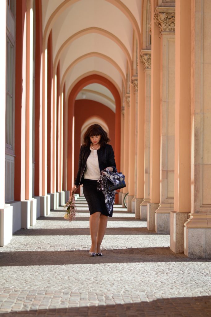 mir gefällt die Kombination von Rock und Blazer mit dem tollen Muster in Lederimitat, dazu der Hahnentrittmantel, schönes Outfit. Ich trage auch gerne Tücher, die sind vielseitig einsetzbar und zu stylen, sie verändern einen Look total.