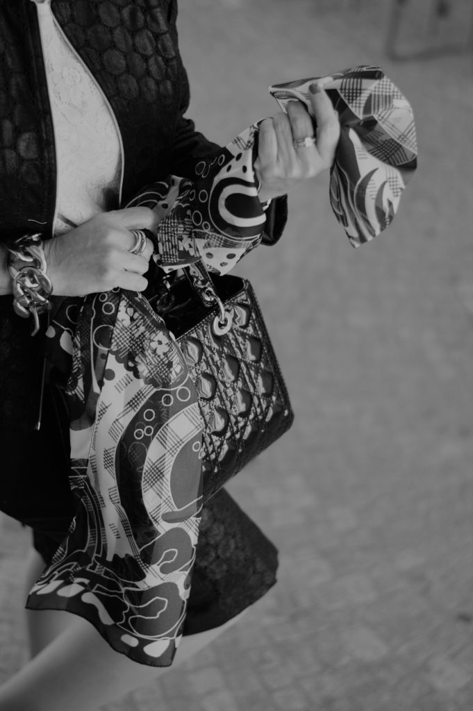 In diesem Jahr sind Tücher wieder zum Modetrend ausgerufen. Ohne Tücher kann ich mir viele Looks gar nicht vorstellen. Ich trage häufig, gerne und vielfältig Tücher. Zu meinem Look habe ich mir ein Schaltuch in schwarz-weiß ausgesucht. Das Tuch hat eine Länge von 1,60 m. Das ist eine ideale Länge, um es in den unterschiedlichsten Varianten zu binden. Es ist duftig, leicht und sowohl für kühlere Tage als auch im Sommer tragbar.
