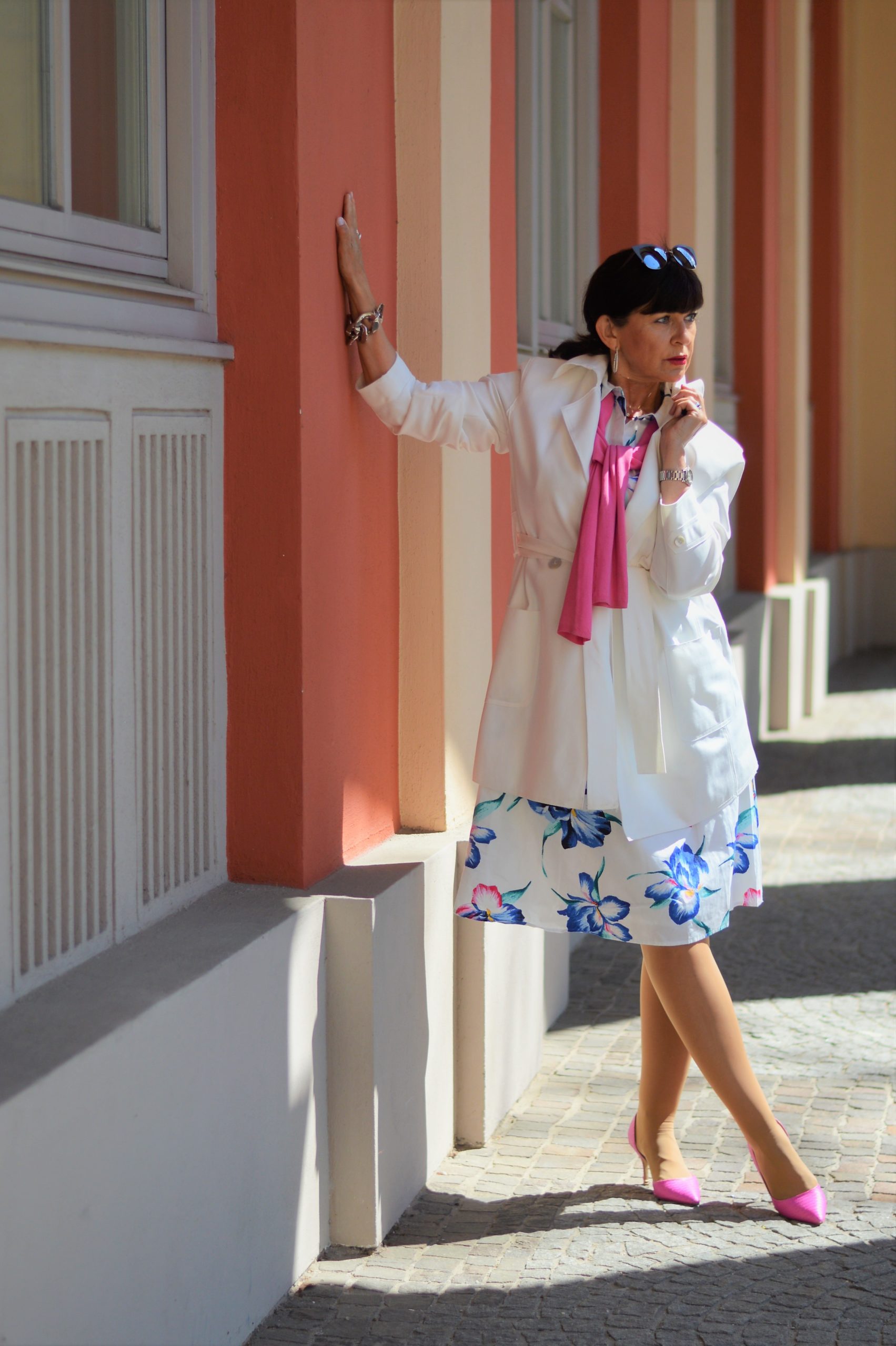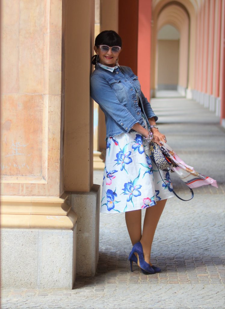 Hallo Martina, florale Muster liebe ich sehr! Am besten finde ich das Kleid mit Jeansjacke, aber auch mit dem weißen Mantel.