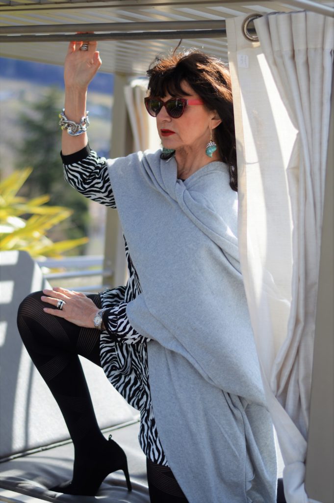 Animalprint und Zebra sind etwas unterschiedlich. Ich bin eher der Zebra-Fan. Das Cape lässt den Look stets anders wirken, durch die Möglichkeiten, es zu binden. Ja, Jeans, das sehe ich aktuell bei anderen einfach zu viel. Ich selbst trage auch gerne MAL, ab und zu, eine Jeans. Aber wir haben doch andere Möglichkeiten unsere Weiblichkeit mal wieder zu zeigen – sollten wir das nicht häufiger einfach tun?!
