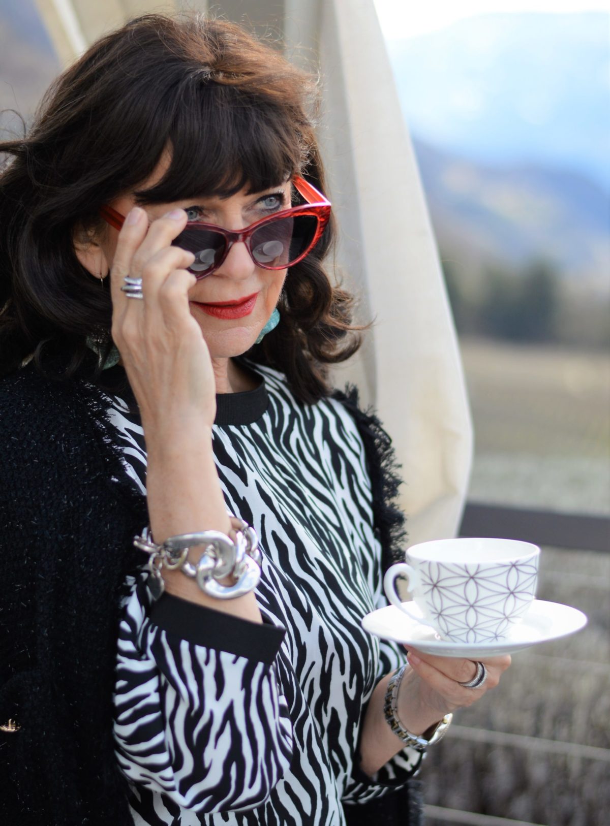Leo-Print ist nicht die Musterung, bei der ich 100 %ig HURRA rufe, auch wenn diese seit gefühlt ewigen Zeiten sogenannter Trend ist. Bis dato hat es nur ein Blazer im Leo-Print geschafft, in meinem Kleiderschrank zu hängen. Ich sage explizit „zu hängen“, denn ich trage ihn sehr selten. Anders verhält es sich bei Prints in Black and White. Zebra-Muster gefallen wir gut und sind ein extremer Gegensatz zu meinen bisherigen Kleidern mit Blütenprints. Ich liebe Gegensätze in meinen Stilrichtungen und Stylings, das weisst Du ja, wenn Du meinen Blog regelmäßig liest.