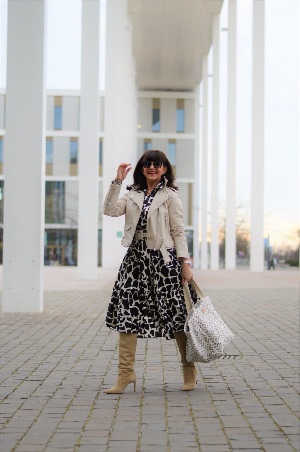Es kommt mehr und mehr vor, dass ich mich an neue Stylings wage. Kleid und Lederjacke war bis vor 3 Jahren für mich kaum vorstellbar. Jetzt greife ich sehr gerne zu dieser Kombination. Kleid und Stiefel? Was hat mich da denn geritten?