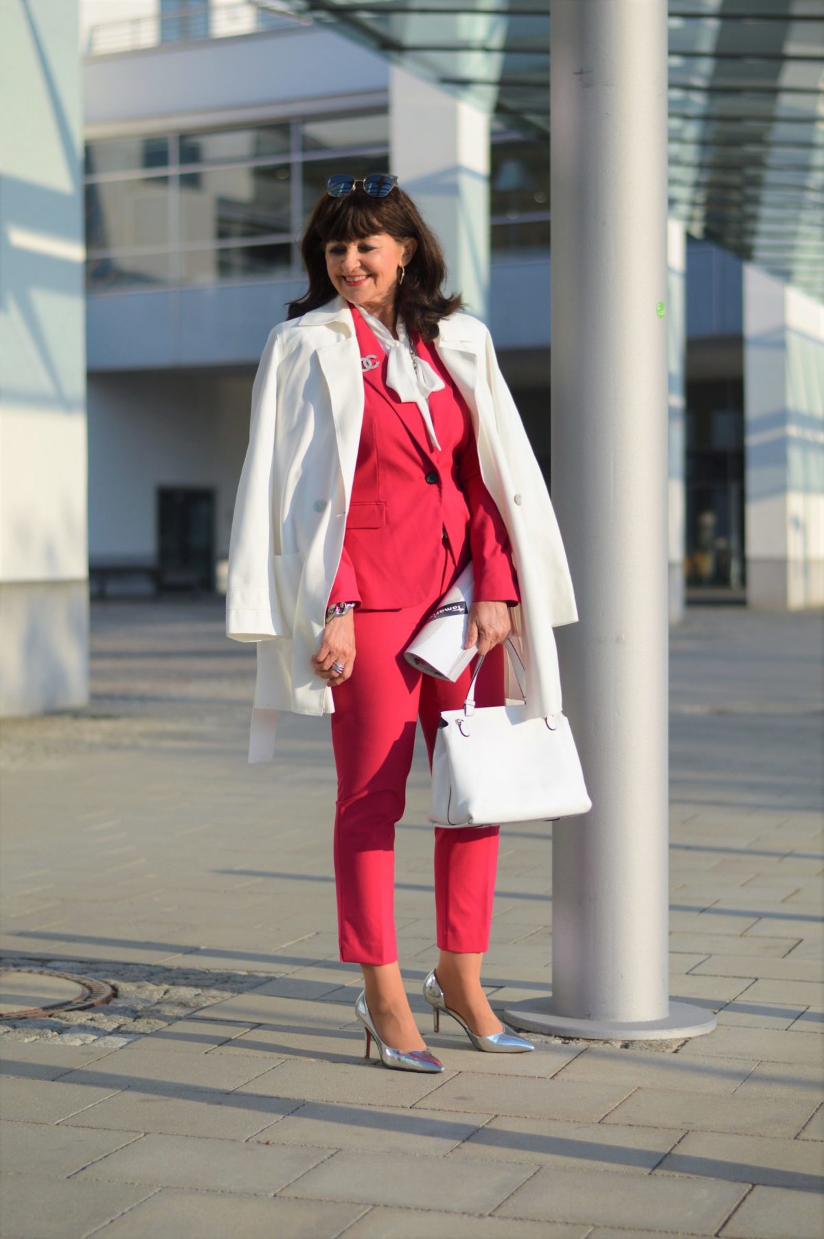 Ich könnte ihn jeden Tag tragen – den Hosenanzug. Neben Kleidern ist er mein liebstes Kleidungsstück. Der Hosenanzug steht für Gleichheit, Emanzipation, Powerdressing und Selbstbewusstsein. Kaum vorstellbar, dass ein Hosenanzug früher nur den Männer vorbehalten war. Gerade in der aktuellen Saison wird er immer wieder als Must Have bezeichnet. Ich trage Hosenanzüge, seitdem ich berufstätig bin – und das ist wirklich schon sehr lange! In dieser Saison sind vor allem Hosenanzüge in Knallfarben angesagt: Pink, Orange, Gelb, Lila – um nur einige der wichtigsten Trendfarben zu nennen.