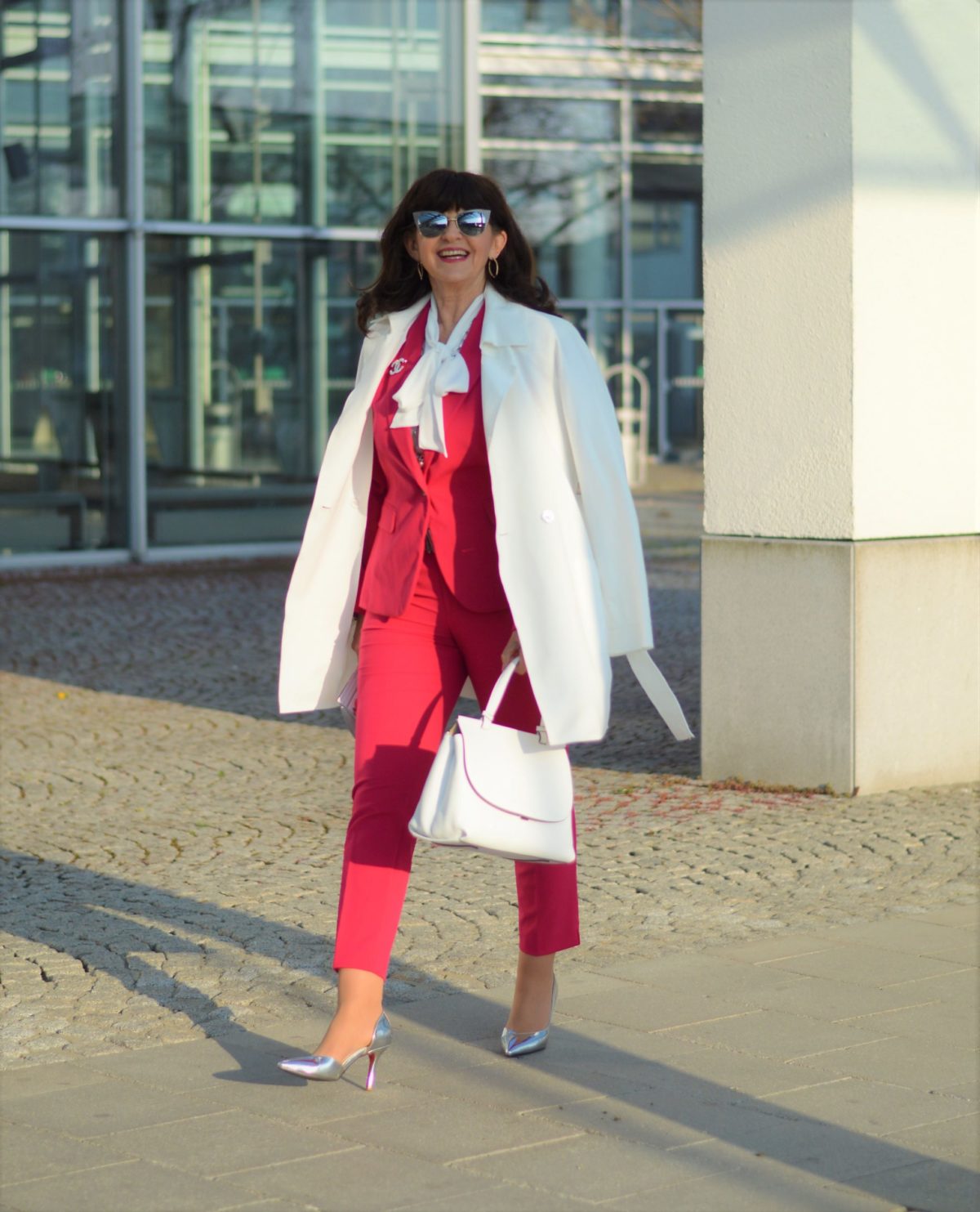 Martina, you are stunning! What a fabulous suit. And the color is beautiful on you. The silver shoes and your other accessories are on totally on point!