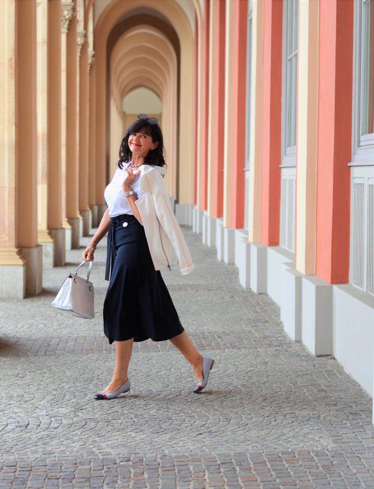 Liebe Martina, du sprichst mir aus dem Herzen. In der Stadt – und damit meine ich Erlangen und Nürnberg sieht man chice Frauen leider immer weniger. Ich persönlich bin überhaupt keine Freundin vom Schlabberlook. Da ich 60+ bin und nicht mehr berufstätig bin, macht es mir jeden Tag aufs Neue Spaß und Freude, mich jeden Tag modisch zu kleiden, auch daheim. Das Wort“overdressed“ gibt es bei mir nicht. Und nur so gefalle ich mir selbst und fühle mich wohl. Dein Rock gefällt mir sehr gut. Du hast ihn super kombiniert. Ich glaube, so ein dunkelblauer Rock muss auch in meinen Kleiderschrank einziehen. Der maritime Stil gefällt mir besonders, komme ich doch von der Nordsee, an der wir nächste Woche ein paar Tage verbringen werden.