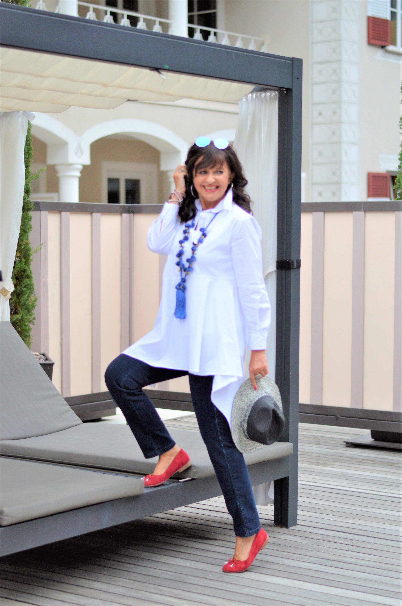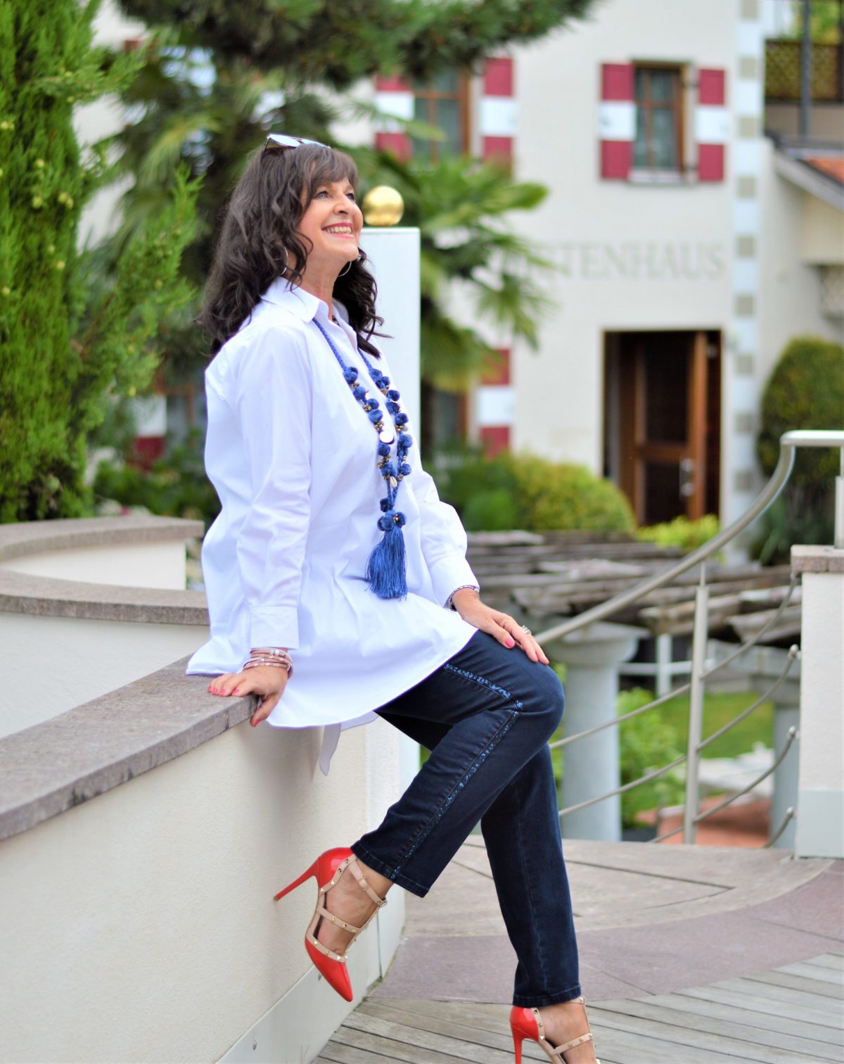 Stretch-Anteil bei einer Jeans ist für mich überaus hilfreich und sinnvoll. Die Bluse ist definitiv ein Hingucker und etwas besonders.